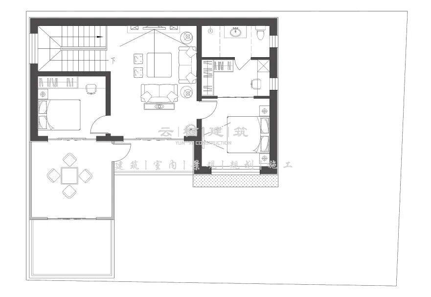 总计设计了三间卧室,其中两间主卧,一间客房,主卧配备了独立衣帽和卫浴,提升空间品质。西侧的露台封闭为阳光房,可以用做休闲和喝茶区。
