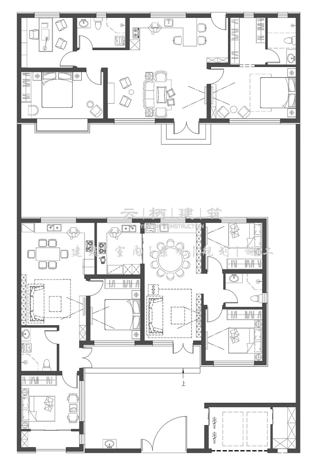 三户都采用了客餐厅一体式设计,空间自由且连续,同时让共享空间更显宽阔,接待自用都更加方便。