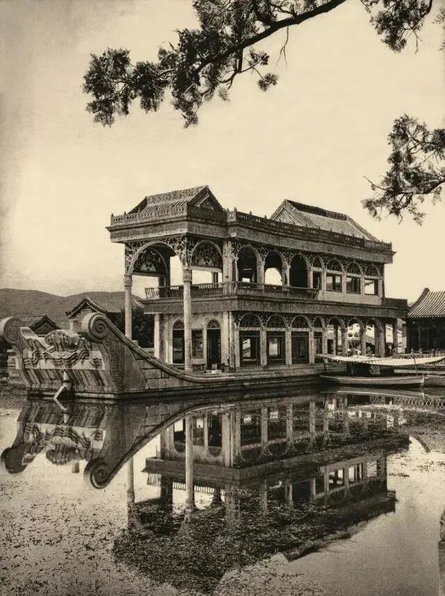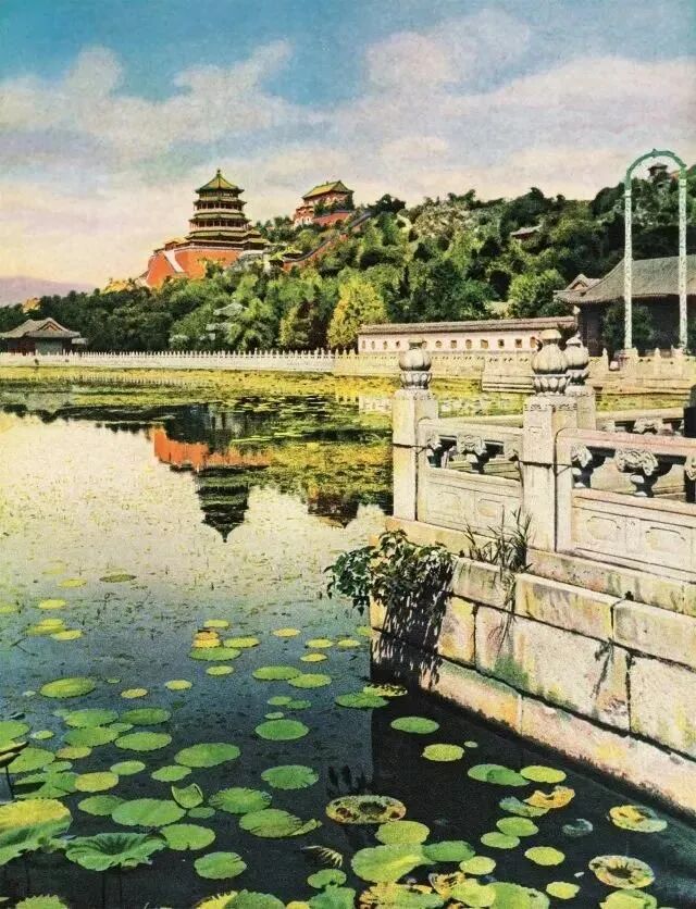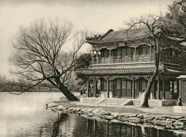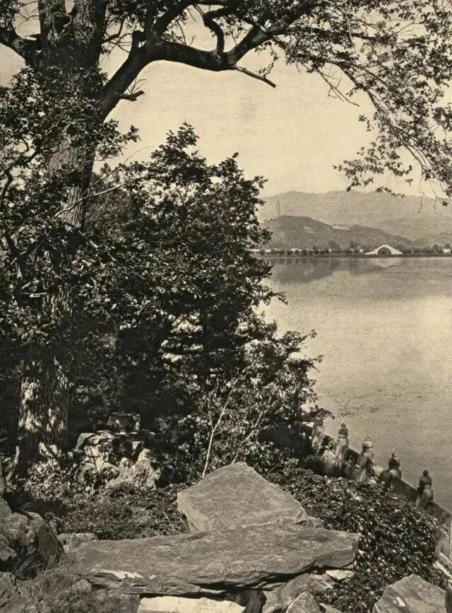 湖边绿树成荫,周围开着茶馆儿、商铺,当时的人们来此处大多就是为了消夏休闲,享受惬意时光。