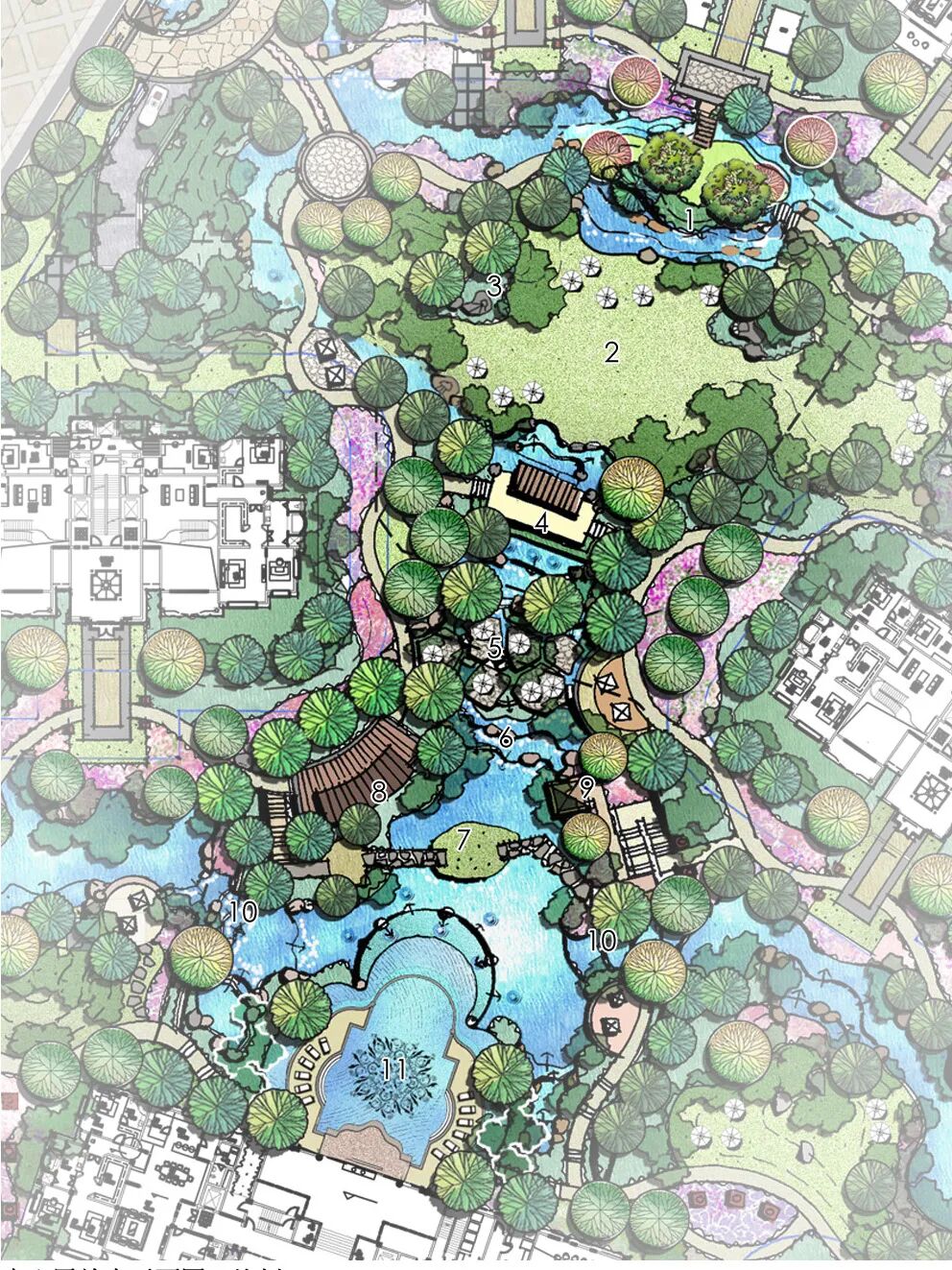 植物设计重在营造园林意境和自然氛围,更多从造景手法上去考虑植物的形态和搭配,用植物作点缀,打造景观亮点,同时减少人工化的痕迹,营造“虽由人作,宛自天开”之感。