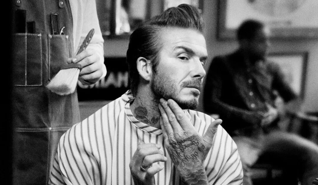 伦敦一家工业风的美发沙龙里,贝克汉姆正专注地凝视着镜子里的自己,用胡须油打理着自己那丝毫不显邋遢的络腮胡,勾勒出轮廓分明的下颌。