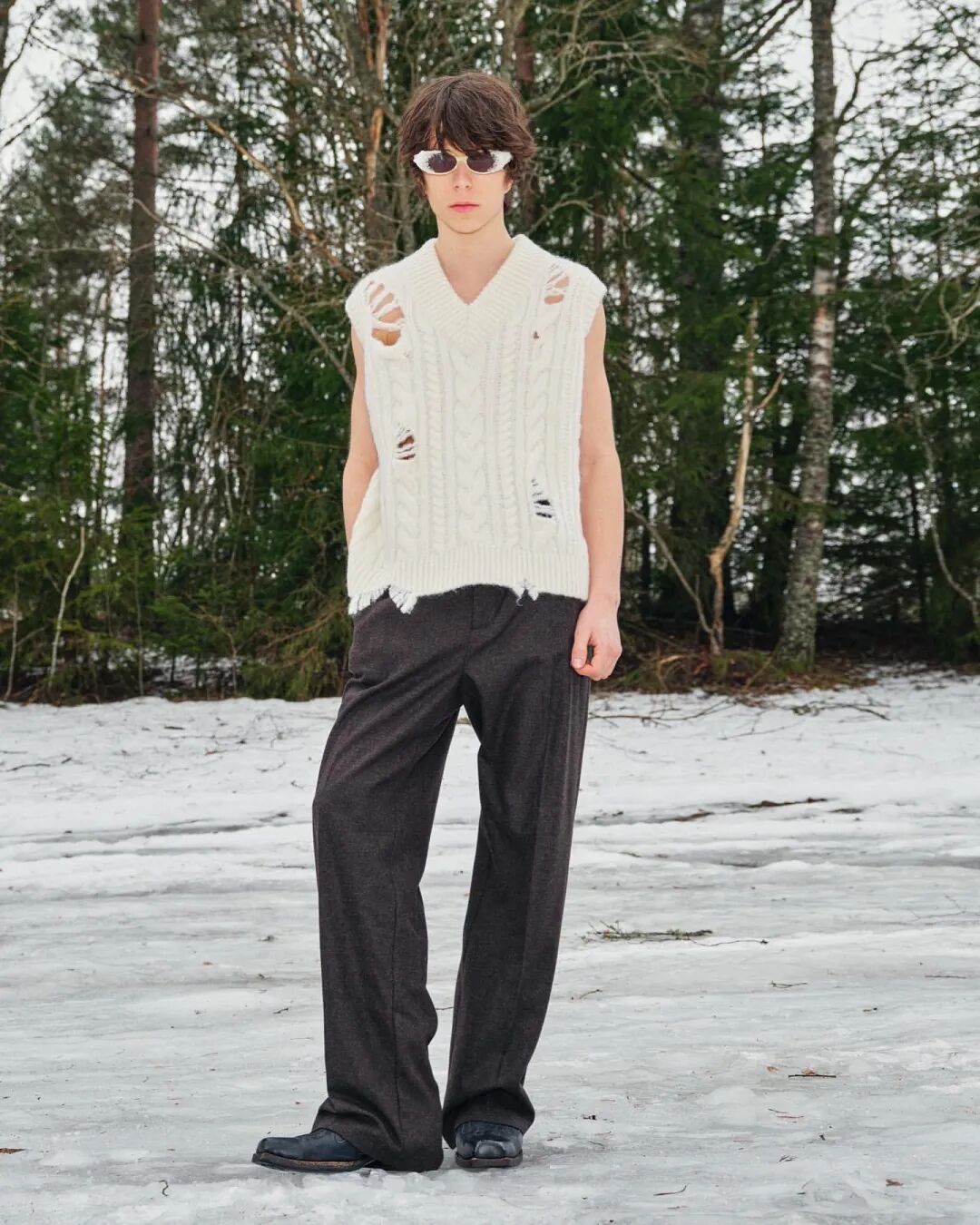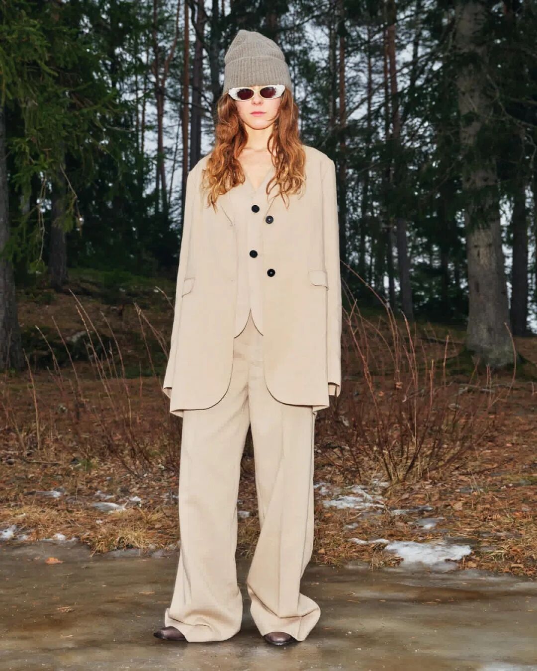 Holzweiler在服装的视觉表达上总能够给人一尘不染的感觉,细致入微的设计巧思让多种元素融入,同时表达着制作之中的匠人精神。