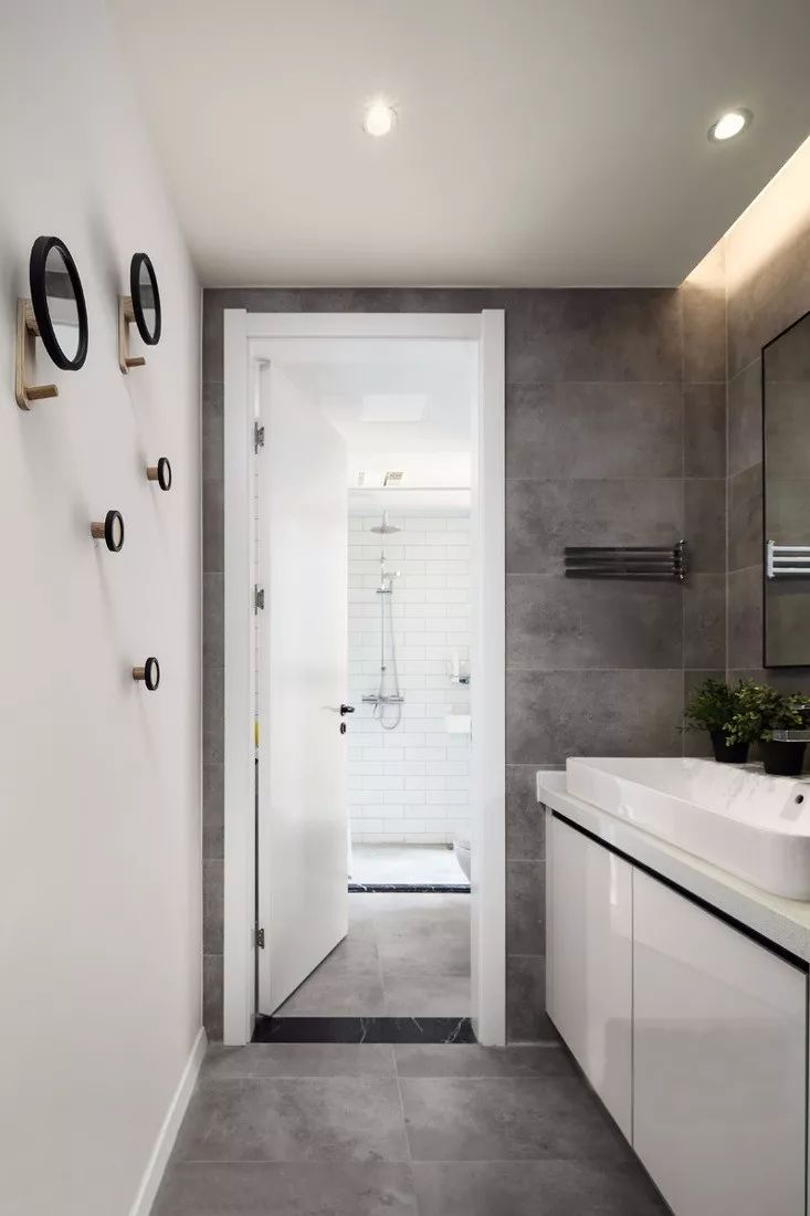 湿区的砖面选择了和厨房同款的小白砖,整体感很好。