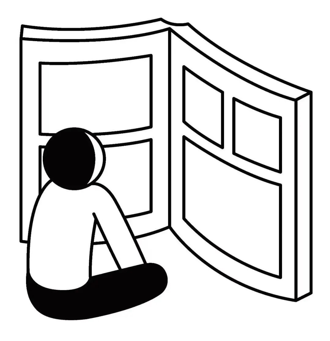 创办漫编室时,她就将 logo 设想为一个小人儿坐在巨大的漫画书前。ta 可以是任何人,也能自由地闯进任何一本书里漫游。