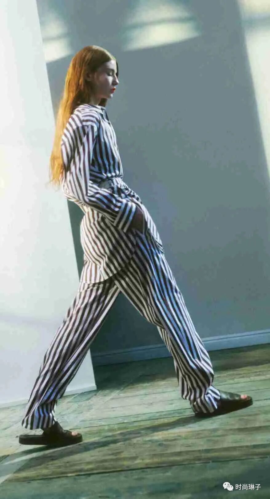 该系列除了男神穿搭改造的中性化衣橱,还有像睡衣一般舒适的条纹或格纹套装,裁剪干净俐落的外套或裙装,以及至脚踝的长裙,实穿性很强,满足了女性工作或生活度假的多方面需求。