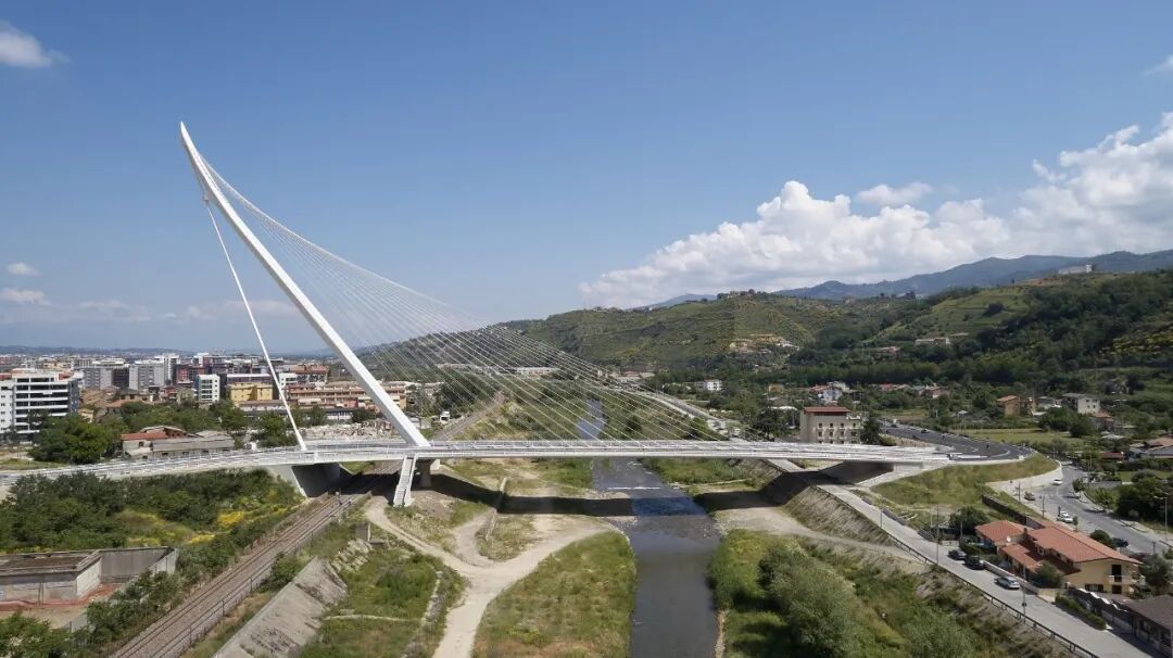 阿拉米罗大桥(Puente del Alamillo)位于西班牙塞维利亚,跨越阿方索十三世运河,其设计者桑地亚哥·卡拉特拉瓦(Santiago Calatrava Valls)是西班牙当代建筑的代表人物,被称为“建筑诗人”。