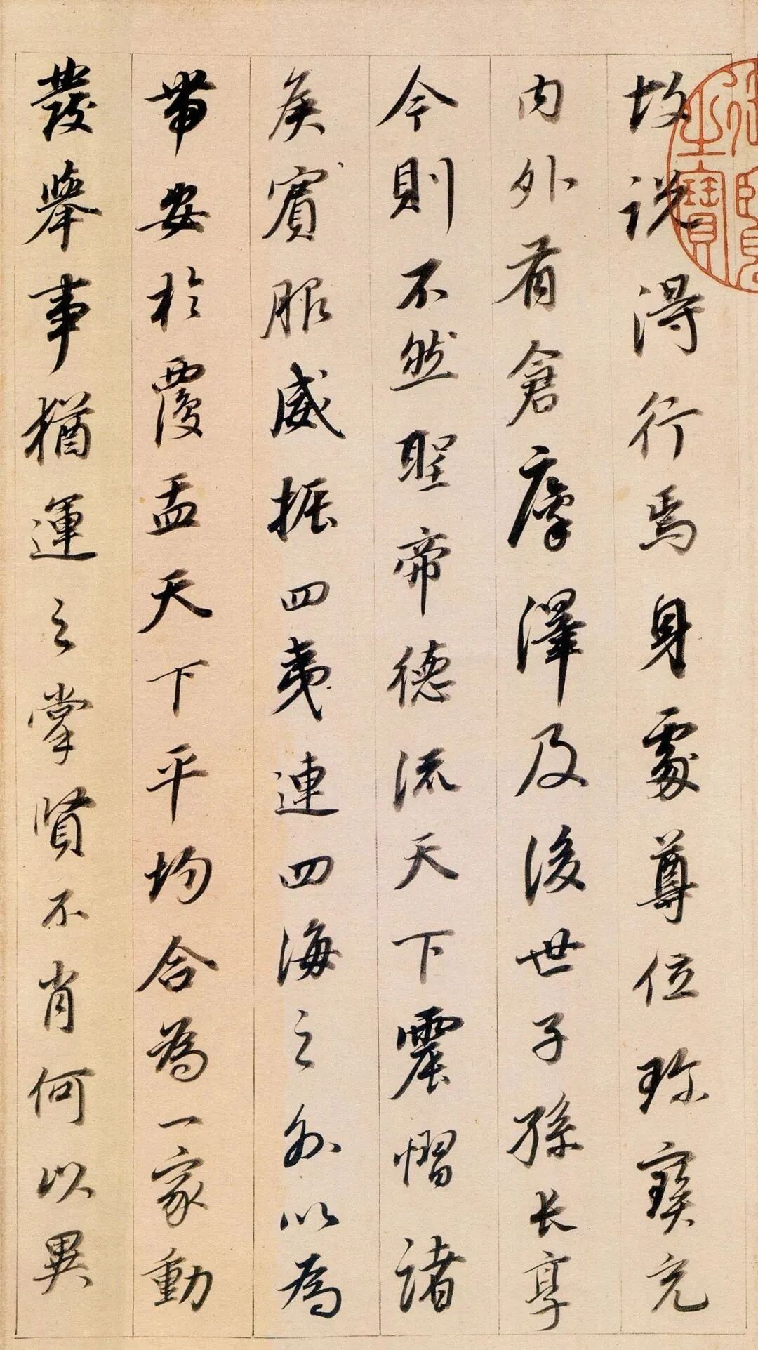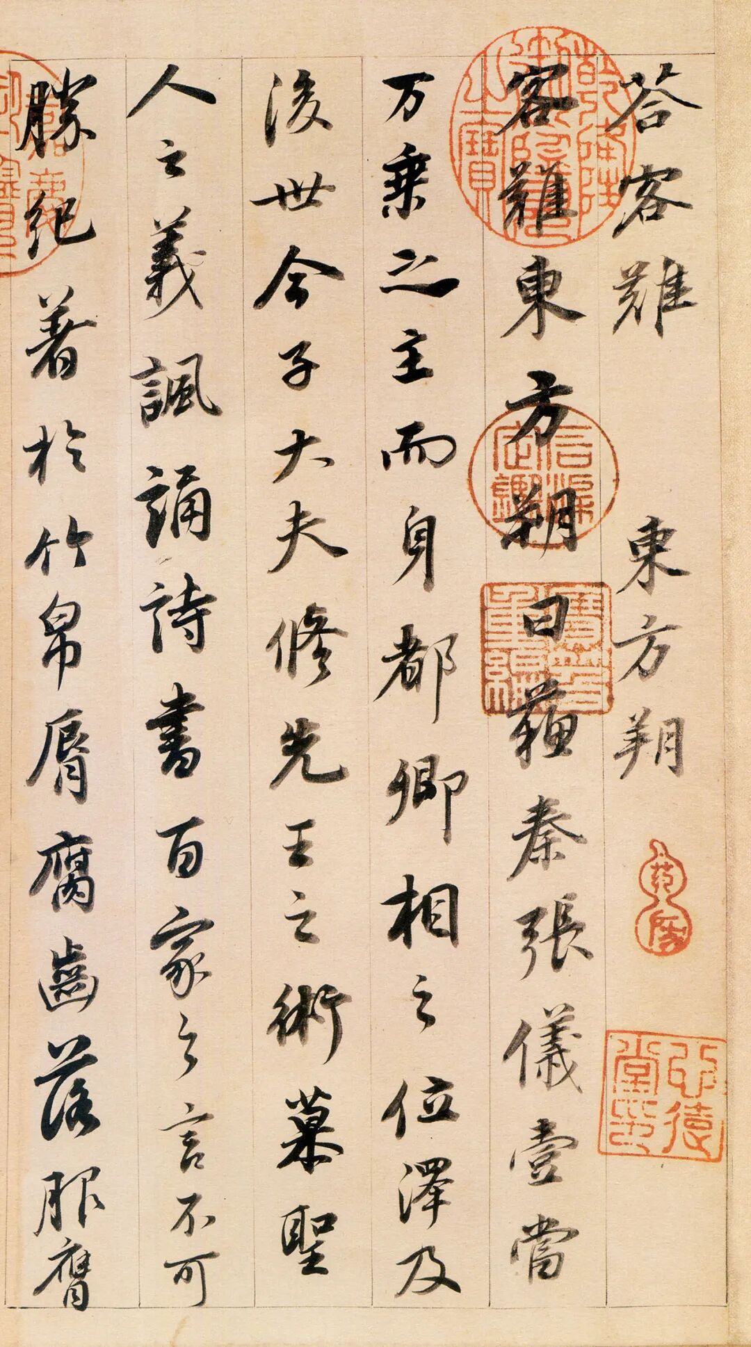 《答客难》是董其昌晚年的代表书作,此作行中兼楷,用笔有颜真卿的率意,体势有米芾的欹侧,布局得赵孟頫之风神,轻捷自如而风华自足。
