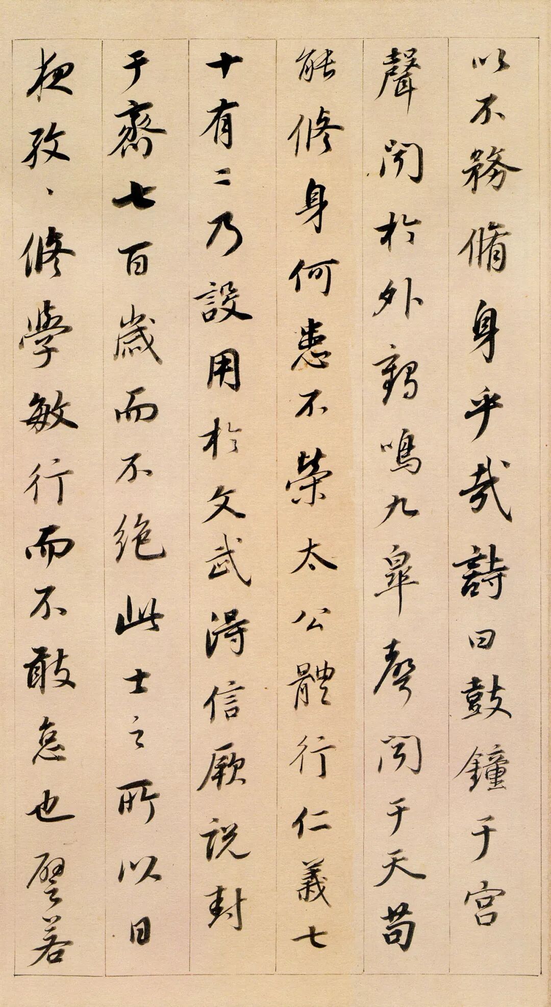 【7】以不务修身乎哉!诗曰:‘鼓钟于宫,声闻于外。鹤鸣九皐,声闻于天’苟能修身,何患不荣!太公体行仁义,七十有二,乃设用于文武,得信厥说,封于齐,七百岁而不绝。此士所以日夜孽孽,修学敏行,而不敢怠也。譬若