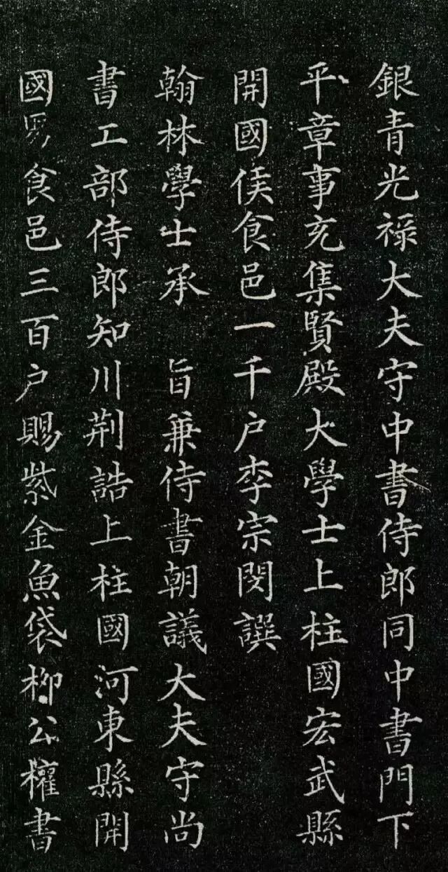 【2】银青光禄大夫、守中书侍郎同中书门下平章事充集贤殿大学士、上柱国安武县开国侯食邑一千户李宗闵撰。翰林学士承旨、兼侍书朝议大夫、守尚书工部侍郎、知制浩西神河东县、食邑三百户紫金鱼袋柳公权书