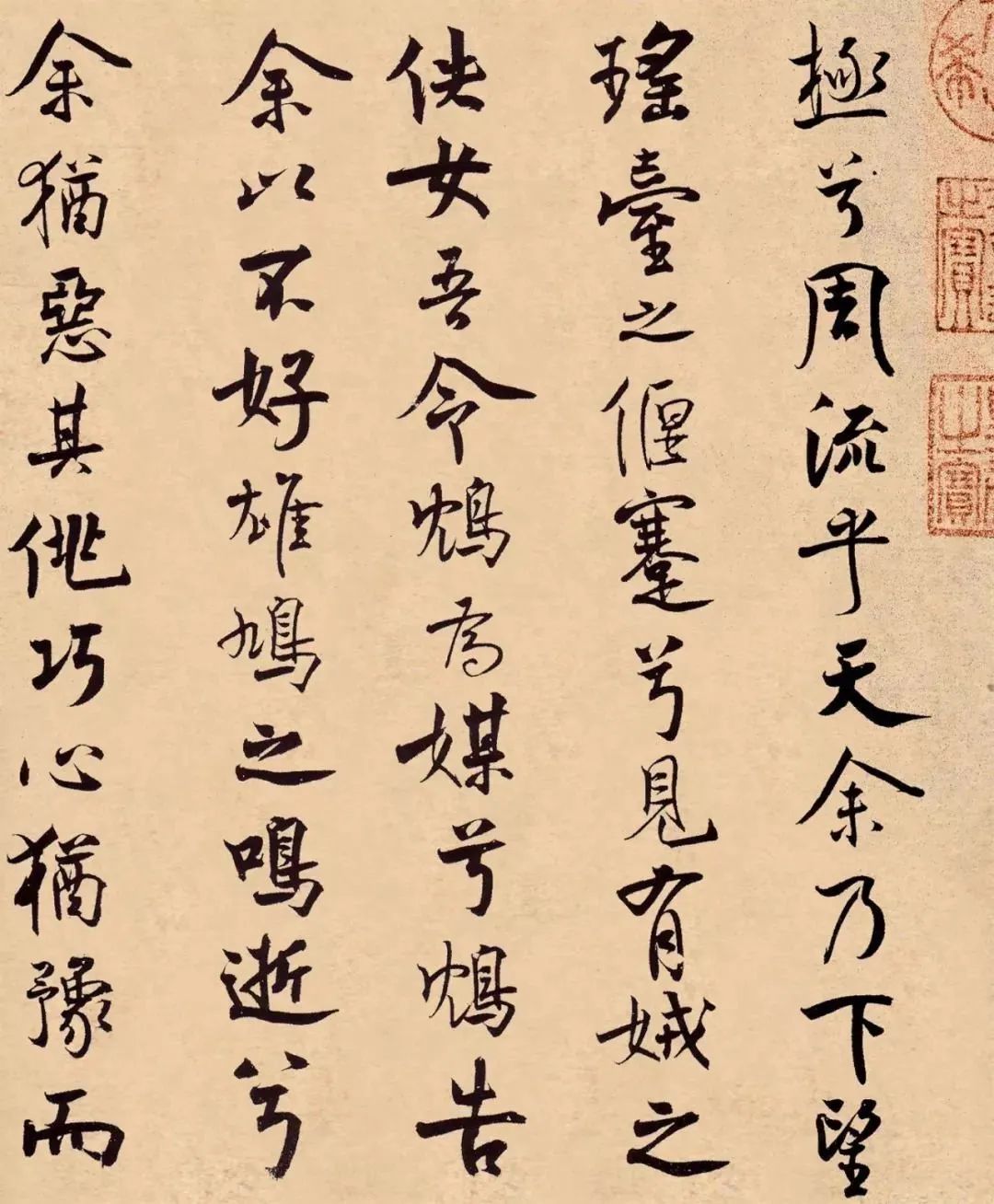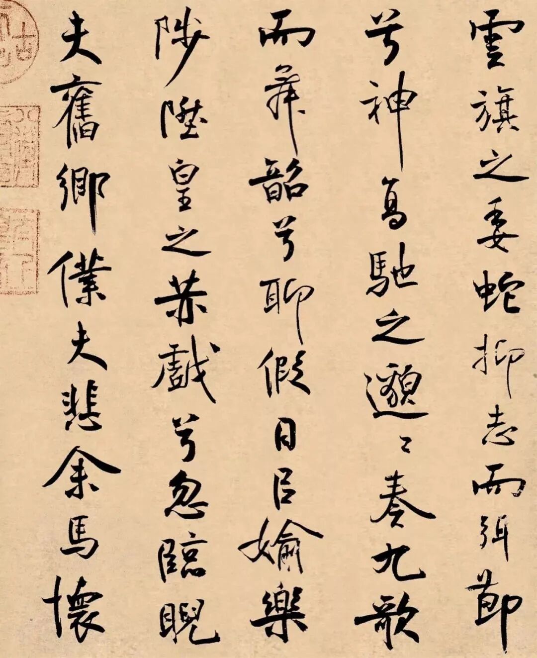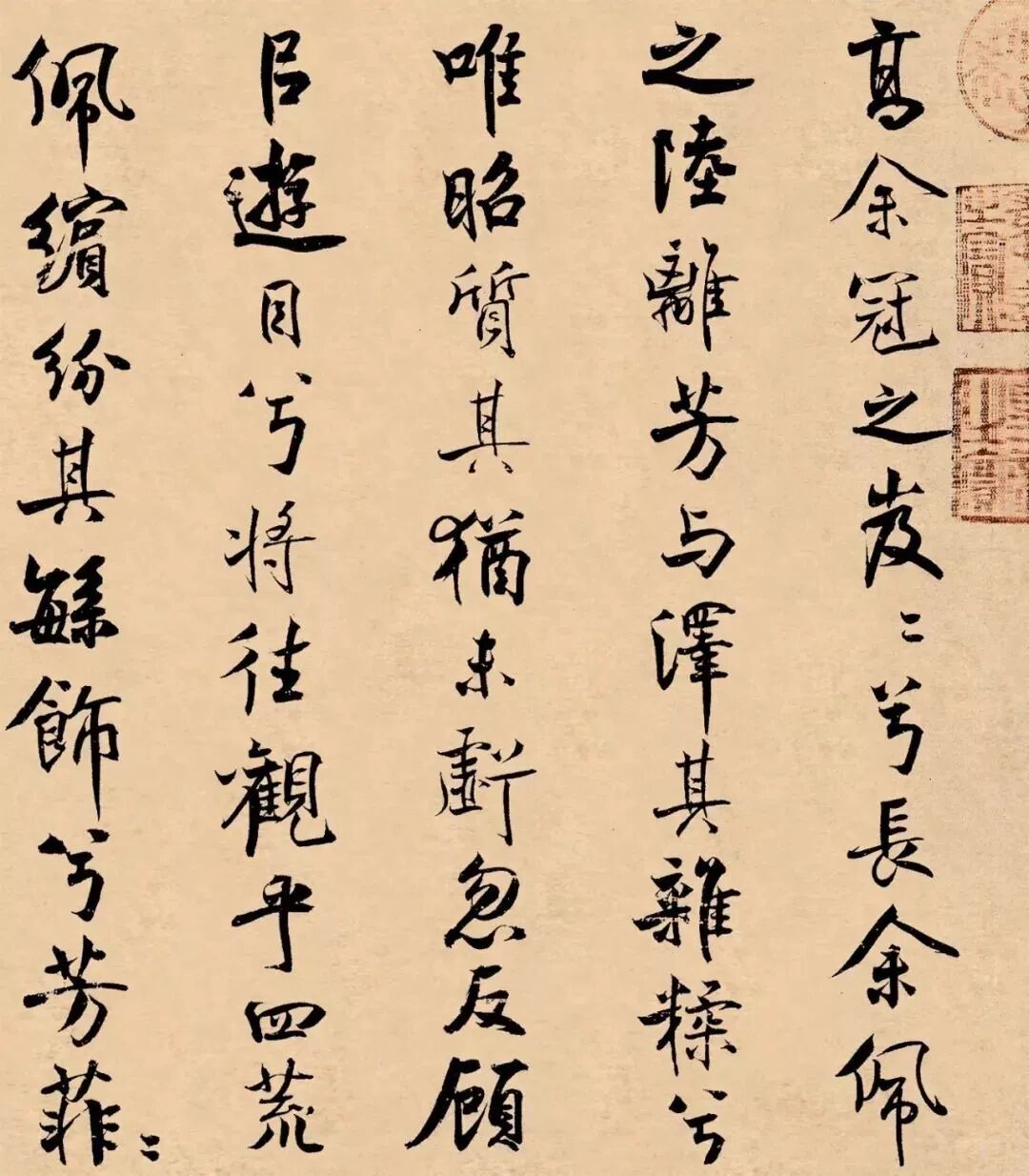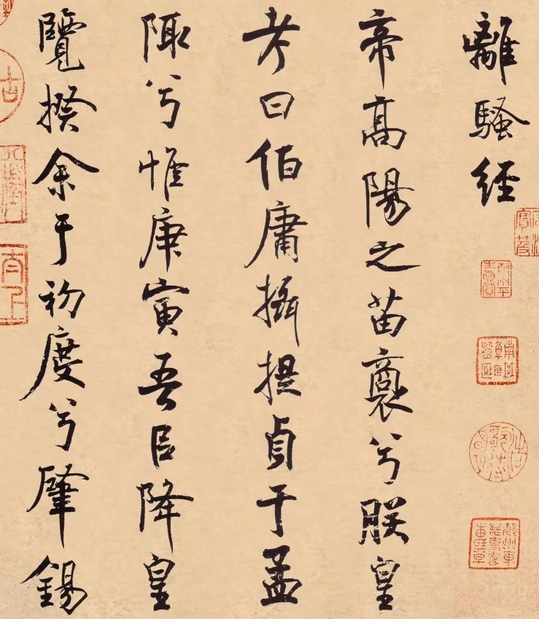 作品集2024-01-11 碑帖|米芾《离骚经》 编者按 此帖为米芾三十一岁时所书,此贴端庄流利,字字精工,与米芾晚期作品的旷达潇洒,不入流俗,沉得痛快,有所不同。 米芾《离骚经》系小行楷,但是大量笔法和结构仍属楷书范畴,且字迹稍小。原墨迹为纸本册页。凡二十六开,每开二幅,每幅五行,每行字数不一。幅纵三十五点五公分,横三十一点二公分。共2494个字。此帖为米芾31岁时所书,此贴端庄流利,字字精工,与米芾晚期作品的旷达潇洒,不入流俗,沉得痛快,有所不同。 据传此帖自打写成后一直被历代收藏家隐秘珍藏,在民间流传千年不为公众所知,近年拍卖公司从一位原国民党要员后人手中征集到的,估值超1亿元人民币。经杨仁恺、杨新鉴定,此《离骚经》系米芾本人真迹。 米芾 / 行楷《离骚经》 【1】《离骚经》帝高阳之苗裔兮,朕皇考曰伯庸。摄提贞于孟陬兮,惟庚寅吾以降。皇览揆余初度兮,肇锡 【2】余以嘉名:名余曰正则兮,字余曰灵均。纷吾既有此内美兮,又重之以修能。扈江离与辟芷兮,纫秋兰以为佩。汩余若将 【3】不及兮,恐年岁之不吾与。朝搴阰之木兰兮,夕揽洲之宿莽。日月忽其不淹兮,春与秋其代序。惟草木之零落兮,恐美人之迟暮。 【4】不抚壮而弃秽兮,何不改乎此度?乘骐骥以驰骋兮,来吾道夫先路!昔三后之纯粹兮,固众芳之所在。杂申椒与菌桂兮, 【5】岂惟纫夫蕙茝!彼尧、舜之耿介兮,既遵道而得路。何桀纣之猖披兮,夫惟捷径以窘步。惟夫党人之偷乐兮,路幽昧以险 【6】隘。岂余身之殚殃兮,恐皇舆之败绩!忽奔走以先后兮,及前王之踵武。荃不查余之中情兮,反信谗而齌怒。余固知謇 【7】謇之为患兮,忍而不能舍也。指九天以为正兮,夫惟灵修之故也。曰黄昏以为期兮,羌中道而改路!初既与余成言兮,后悔遁 【8】而有他。余既不难夫离别兮,伤灵修之数化。余既滋兰之九畹兮,又树蕙之百亩。畦留夷与揭车兮,杂杜衡与芳芷。冀枝叶之 【9】峻茂兮,愿俟时乎吾将刈。虽萎绝其亦何伤兮,哀众芳之芜秽。众皆竞进以贪婪兮,凭不厌乎求索。羌内恕己以量人兮, 【10】各兴心而嫉妒。忽驰骛以追逐兮,非余心之所急。老冉冉其将至兮,恐修名之不立。朝饮木兰之坠露兮,夕餐秋菊之落英。苟 【11】余情其信姱以练要兮,长顑颔亦何伤。掔木根以结茝兮,贯薜荔之落蕊。矫菌桂以纫蕙兮,索胡绳之纚纚。謇吾法夫 【12】前修兮,非世俗之所服。虽不周于今之人兮,愿依彭咸之遗则。长太息以掩涕兮,哀民生之多艰。余虽好修姱以鞿羁兮,謇朝谇而 【13】夕替。既替余以蕙纕兮,又申之以揽茝。亦余心之所善兮,虽九死其犹未悔。怨灵修之浩荡兮,终不察夫民心。众女嫉余之蛾 【14】眉兮,谣诼谓余以善淫。固时俗之工巧兮,偭规矩而改错。背绳墨以追曲兮,竞周容以为度。忳郁邑余侘傺兮,吾独穷困乎此 【15】时也。宁溘死以流亡兮,余不忍为此态也。鸷鸟之不群兮,自前世而固然。何方圜之能周兮,夫孰异道而相安?屈心而抑志兮,忍尤 【16】而攘诟。伏清白以死直兮,固前圣之所厚。悔相道之不察兮,延伫乎吾将反。回朕车以复路兮,及行迷之未远。步余马于兰皋 【17】兮,驰椒丘且焉止息。进不入以离尤兮,退将复修吾初服。制芰荷以为衣兮,集芙蓉以为裳。不吾知其亦已兮,苟余情其信芳。 【18】高余冠之岌岌兮,长余佩之陆离。芳与泽其杂糅兮,唯昭质其犹未亏。忽反顾以游目兮,将往观乎四荒。佩缤纷其繁饰兮,芳菲菲 【19】其弥章。民生各有所乐兮,余独好修以为常。虽体解吾犹未变兮,岂余心之可惩。女嬃之婵媛兮,申申其詈予,曰:「鲧婞直 【20】以亡身兮,终然夭乎羽之野。汝何博謇而好修兮,纷独有此姱节?薋菉葹以盈室兮,判独离而不服。」众不可户说兮,孰 【21】云察余之中情?世并举而好朋兮,夫何茕独而不予听?依前圣以节中兮,喟凭心而历兹。济沅、湘以南征兮,就重华而敶 【22】词:启《九辩》与《九歌》兮,夏康娱以自纵。不顾难以图后兮,五子用失乎家衖。羿淫游以佚畋兮,又好射夫封狐。固乱流其鲜终兮,浞 【23】又贪夫厥家。浇身被服强圉兮,纵欲而不忍。日康娱而自忘兮,厥首用夫颠陨。夏桀之常违兮,乃遂焉而逢殃。后辛之菹醢兮, 【24】殷宗用而不长。汤、禹俨而祗敬兮,周论道而莫差。举贤才而授能兮,循绳墨而不颇。皇天无私阿兮,览民德焉错辅。夫维圣哲之 【25】茂行兮,苟得用此下土。瞻前而顾后兮,相观民之计极。夫孰非义而可用兮?孰非善而可服?阽余身而危死兮,览余初其犹未悔。不 【26】量凿而正枘兮,固前修以菹醢。曾歔欷余郁邑兮,哀朕时之不当。揽茹蕙以掩涕兮,沾余襟之浪浪。跪敷衽以陈辞兮,耿吾既 【27】得此中正。驷玉虬以桀鹥兮,溘埃风余上征。朝发轫于苍梧兮,夕余至乎县圃。欲少留此灵琐兮,日忽忽其将暮。吾令羲和弭节兮, 【28】望崦嵫而勿迫。路漫漫其修远兮,吾将上下而求索。饮余马于咸池兮,总余辔乎扶桑。折若木以拂日兮,聊逍遥以相羊。前望 【29】舒使先驱兮,后飞廉使奔属。鸾皇为余先戒兮,雷师告余以未具。吾令凤鸟飞腾兮,继之以日夜。飘风屯其相离兮,帅云霓 【30】而来御。纷总总其离合兮,斑陆离其上下。吾令帝阍开关兮,倚阊阖而望予。时暧暧其将罢兮,结幽兰而延伫。世溷浊而 【31】不分兮,好蔽美而嫉妒。朝吾将济于白水兮,登阆风而绁马。忽反顾以流涕兮,哀高丘之无女。溘吾游