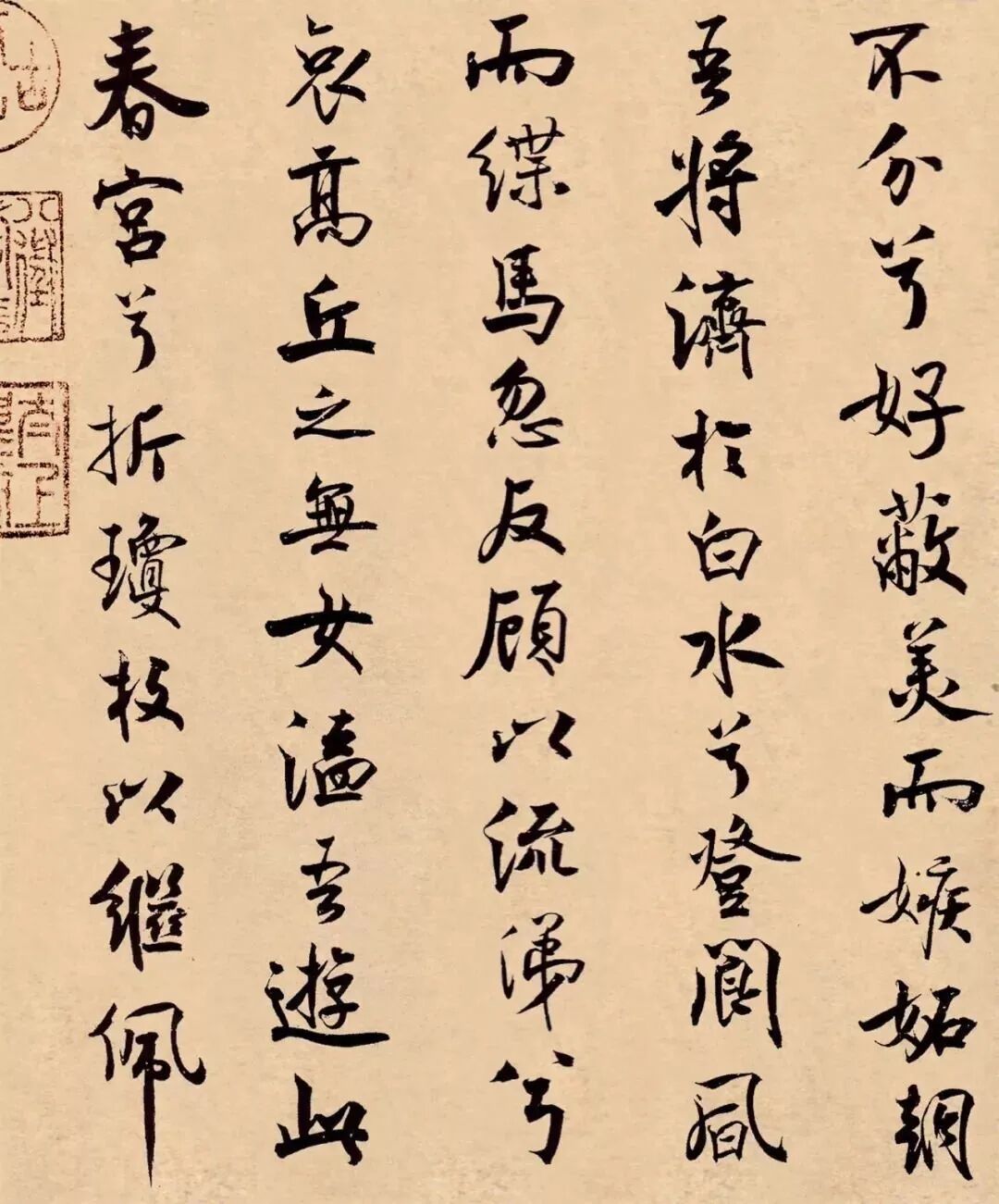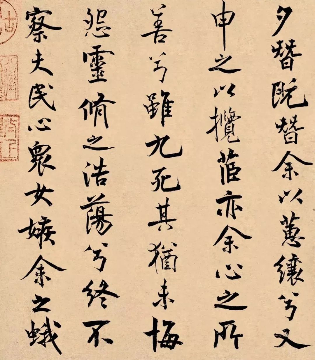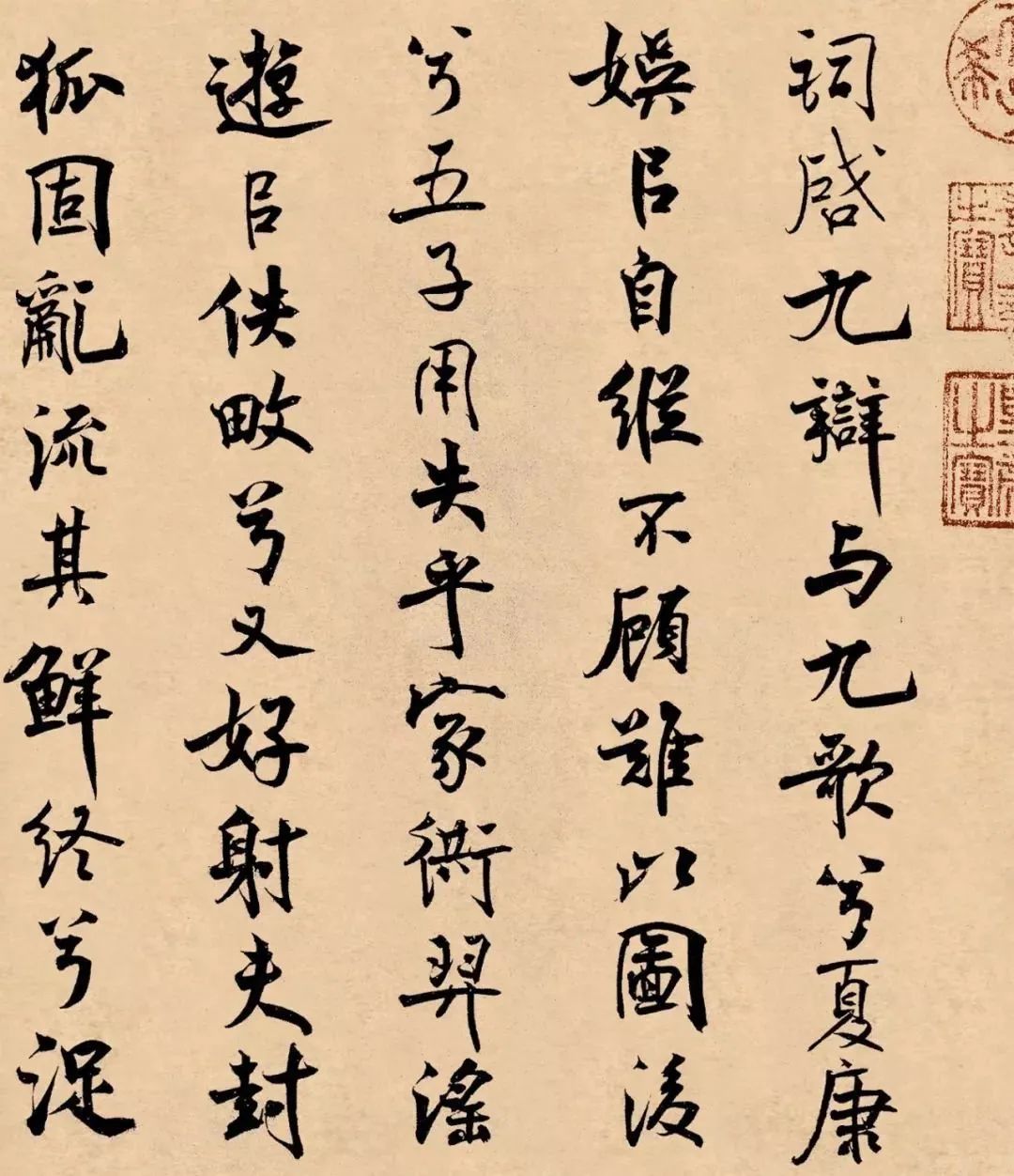 作品集2024-01-11 碑帖|米芾《离骚经》 编者按 此帖为米芾三十一岁时所书,此贴端庄流利,字字精工,与米芾晚期作品的旷达潇洒,不入流俗,沉得痛快,有所不同。 米芾《离骚经》系小行楷,但是大量笔法和结构仍属楷书范畴,且字迹稍小。原墨迹为纸本册页。凡二十六开,每开二幅,每幅五行,每行字数不一。幅纵三十五点五公分,横三十一点二公分。共2494个字。此帖为米芾31岁时所书,此贴端庄流利,字字精工,与米芾晚期作品的旷达潇洒,不入流俗,沉得痛快,有所不同。 据传此帖自打写成后一直被历代收藏家隐秘珍藏,在民间流传千年不为公众所知,近年拍卖公司从一位原国民党要员后人手中征集到的,估值超1亿元人民币。经杨仁恺、杨新鉴定,此《离骚经》系米芾本人真迹。 米芾 / 行楷《离骚经》 【1】《离骚经》帝高阳之苗裔兮,朕皇考曰伯庸。摄提贞于孟陬兮,惟庚寅吾以降。皇览揆余初度兮,肇锡 【2】余以嘉名:名余曰正则兮,字余曰灵均。纷吾既有此内美兮,又重之以修能。扈江离与辟芷兮,纫秋兰以为佩。汩余若将 【3】不及兮,恐年岁之不吾与。朝搴阰之木兰兮,夕揽洲之宿莽。日月忽其不淹兮,春与秋其代序。惟草木之零落兮,恐美人之迟暮。 【4】不抚壮而弃秽兮,何不改乎此度?乘骐骥以驰骋兮,来吾道夫先路!昔三后之纯粹兮,固众芳之所在。杂申椒与菌桂兮, 【5】岂惟纫夫蕙茝!彼尧、舜之耿介兮,既遵道而得路。何桀纣之猖披兮,夫惟捷径以窘步。惟夫党人之偷乐兮,路幽昧以险 【6】隘。岂余身之殚殃兮,恐皇舆之败绩!忽奔走以先后兮,及前王之踵武。荃不查余之中情兮,反信谗而齌怒。余固知謇 【7】謇之为患兮,忍而不能舍也。指九天以为正兮,夫惟灵修之故也。曰黄昏以为期兮,羌中道而改路!初既与余成言兮,后悔遁 【8】而有他。余既不难夫离别兮,伤灵修之数化。余既滋兰之九畹兮,又树蕙之百亩。畦留夷与揭车兮,杂杜衡与芳芷。冀枝叶之 【9】峻茂兮,愿俟时乎吾将刈。虽萎绝其亦何伤兮,哀众芳之芜秽。众皆竞进以贪婪兮,凭不厌乎求索。羌内恕己以量人兮, 【10】各兴心而嫉妒。忽驰骛以追逐兮,非余心之所急。老冉冉其将至兮,恐修名之不立。朝饮木兰之坠露兮,夕餐秋菊之落英。苟 【11】余情其信姱以练要兮,长顑颔亦何伤。掔木根以结茝兮,贯薜荔之落蕊。矫菌桂以纫蕙兮,索胡绳之纚纚。謇吾法夫 【12】前修兮,非世俗之所服。虽不周于今之人兮,愿依彭咸之遗则。长太息以掩涕兮,哀民生之多艰。余虽好修姱以鞿羁兮,謇朝谇而 【13】夕替。既替余以蕙纕兮,又申之以揽茝。亦余心之所善兮,虽九死其犹未悔。怨灵修之浩荡兮,终不察夫民心。众女嫉余之蛾 【14】眉兮,谣诼谓余以善淫。固时俗之工巧兮,偭规矩而改错。背绳墨以追曲兮,竞周容以为度。忳郁邑余侘傺兮,吾独穷困乎此 【15】时也。宁溘死以流亡兮,余不忍为此态也。鸷鸟之不群兮,自前世而固然。何方圜之能周兮,夫孰异道而相安?屈心而抑志兮,忍尤 【16】而攘诟。伏清白以死直兮,固前圣之所厚。悔相道之不察兮,延伫乎吾将反。回朕车以复路兮,及行迷之未远。步余马于兰皋 【17】兮,驰椒丘且焉止息。进不入以离尤兮,退将复修吾初服。制芰荷以为衣兮,集芙蓉以为裳。不吾知其亦已兮,苟余情其信芳。 【18】高余冠之岌岌兮,长余佩之陆离。芳与泽其杂糅兮,唯昭质其犹未亏。忽反顾以游目兮,将往观乎四荒。佩缤纷其繁饰兮,芳菲菲 【19】其弥章。民生各有所乐兮,余独好修以为常。虽体解吾犹未变兮,岂余心之可惩。女嬃之婵媛兮,申申其詈予,曰:「鲧婞直 【20】以亡身兮,终然夭乎羽之野。汝何博謇而好修兮,纷独有此姱节?薋菉葹以盈室兮,判独离而不服。」众不可户说兮,孰 【21】云察余之中情?世并举而好朋兮,夫何茕独而不予听?依前圣以节中兮,喟凭心而历兹。济沅、湘以南征兮,就重华而敶 【22】词:启《九辩》与《九歌》兮,夏康娱以自纵。不顾难以图后兮,五子用失乎家衖。羿淫游以佚畋兮,又好射夫封狐。固乱流其鲜终兮,浞 【23】又贪夫厥家。浇身被服强圉兮,纵欲而不忍。日康娱而自忘兮,厥首用夫颠陨。夏桀之常违兮,乃遂焉而逢殃。后辛之菹醢兮, 【24】殷宗用而不长。汤、禹俨而祗敬兮,周论道而莫差。举贤才而授能兮,循绳墨而不颇。皇天无私阿兮,览民德焉错辅。夫维圣哲之 【25】茂行兮,苟得用此下土。瞻前而顾后兮,相观民之计极。夫孰非义而可用兮?孰非善而可服?阽余身而危死兮,览余初其犹未悔。不 【26】量凿而正枘兮,固前修以菹醢。曾歔欷余郁邑兮,哀朕时之不当。揽茹蕙以掩涕兮,沾余襟之浪浪。跪敷衽以陈辞兮,耿吾既 【27】得此中正。驷玉虬以桀鹥兮,溘埃风余上征。朝发轫于苍梧兮,夕余至乎县圃。欲少留此灵琐兮,日忽忽其将暮。吾令羲和弭节兮, 【28】望崦嵫而勿迫。路漫漫其修远兮,吾将上下而求索。饮余马于咸池兮,总余辔乎扶桑。折若木以拂日兮,聊逍遥以相羊。前望 【29】舒使先驱兮,后飞廉使奔属。鸾皇为余先戒兮,雷师告余以未具。吾令凤鸟飞腾兮,继之以日夜。飘风屯其相离兮,帅云霓 【30】而来御。纷总总其离合兮,斑陆离其上下。吾令帝阍开关兮,倚阊阖而望予。时暧暧其将罢兮,结幽兰而延伫。世溷浊而 【31】不分兮,好蔽美而嫉妒。朝吾将济于白水兮,登阆风而绁马。忽反顾以流涕兮,哀高丘之无女。溘吾游