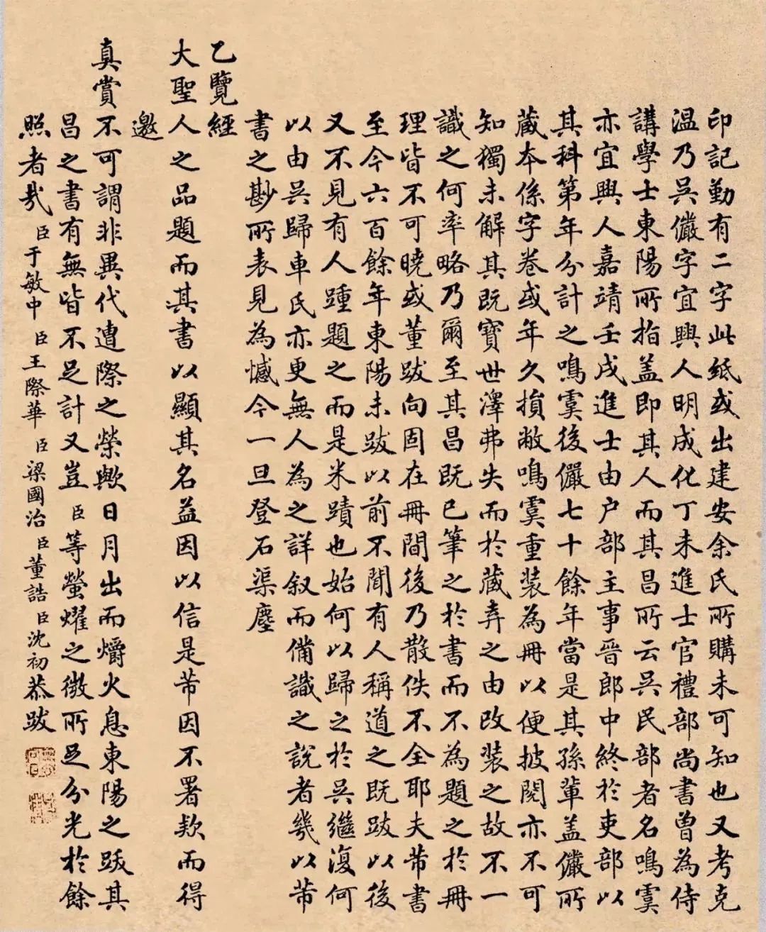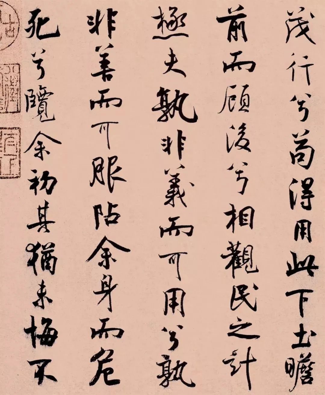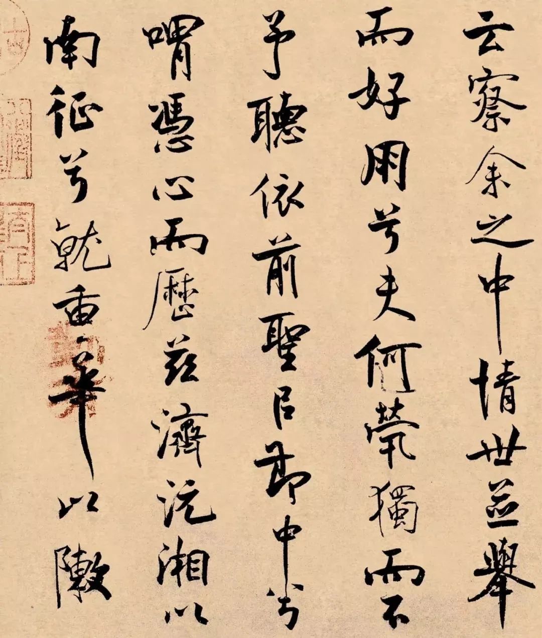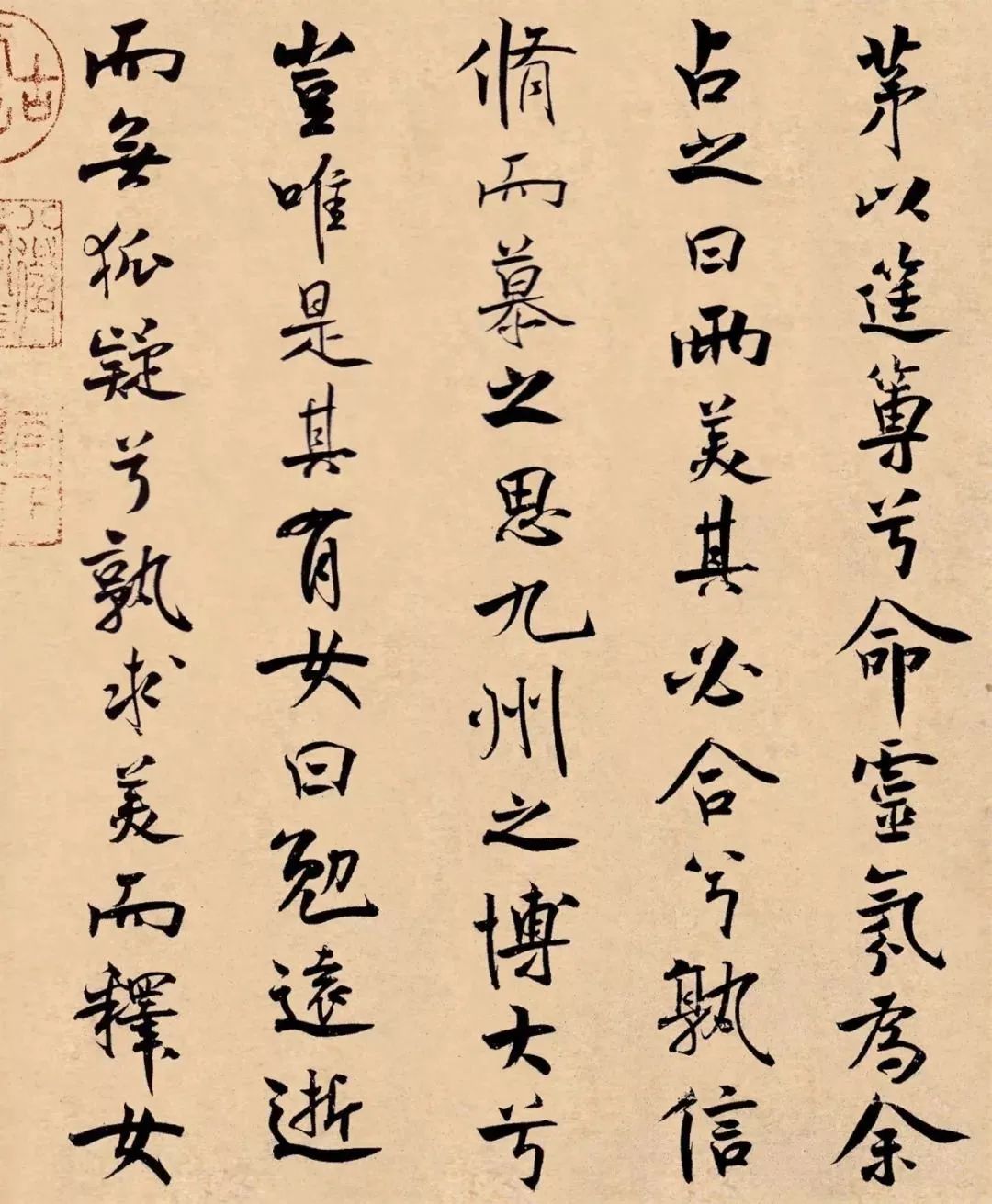 作品集2024-01-11 碑帖|米芾《离骚经》 编者按 此帖为米芾三十一岁时所书,此贴端庄流利,字字精工,与米芾晚期作品的旷达潇洒,不入流俗,沉得痛快,有所不同。 米芾《离骚经》系小行楷,但是大量笔法和结构仍属楷书范畴,且字迹稍小。原墨迹为纸本册页。凡二十六开,每开二幅,每幅五行,每行字数不一。幅纵三十五点五公分,横三十一点二公分。共2494个字。此帖为米芾31岁时所书,此贴端庄流利,字字精工,与米芾晚期作品的旷达潇洒,不入流俗,沉得痛快,有所不同。 据传此帖自打写成后一直被历代收藏家隐秘珍藏,在民间流传千年不为公众所知,近年拍卖公司从一位原国民党要员后人手中征集到的,估值超1亿元人民币。经杨仁恺、杨新鉴定,此《离骚经》系米芾本人真迹。 米芾 / 行楷《离骚经》 【1】《离骚经》帝高阳之苗裔兮,朕皇考曰伯庸。摄提贞于孟陬兮,惟庚寅吾以降。皇览揆余初度兮,肇锡 【2】余以嘉名:名余曰正则兮,字余曰灵均。纷吾既有此内美兮,又重之以修能。扈江离与辟芷兮,纫秋兰以为佩。汩余若将 【3】不及兮,恐年岁之不吾与。朝搴阰之木兰兮,夕揽洲之宿莽。日月忽其不淹兮,春与秋其代序。惟草木之零落兮,恐美人之迟暮。 【4】不抚壮而弃秽兮,何不改乎此度?乘骐骥以驰骋兮,来吾道夫先路!昔三后之纯粹兮,固众芳之所在。杂申椒与菌桂兮, 【5】岂惟纫夫蕙茝!彼尧、舜之耿介兮,既遵道而得路。何桀纣之猖披兮,夫惟捷径以窘步。惟夫党人之偷乐兮,路幽昧以险 【6】隘。岂余身之殚殃兮,恐皇舆之败绩!忽奔走以先后兮,及前王之踵武。荃不查余之中情兮,反信谗而齌怒。余固知謇 【7】謇之为患兮,忍而不能舍也。指九天以为正兮,夫惟灵修之故也。曰黄昏以为期兮,羌中道而改路!初既与余成言兮,后悔遁 【8】而有他。余既不难夫离别兮,伤灵修之数化。余既滋兰之九畹兮,又树蕙之百亩。畦留夷与揭车兮,杂杜衡与芳芷。冀枝叶之 【9】峻茂兮,愿俟时乎吾将刈。虽萎绝其亦何伤兮,哀众芳之芜秽。众皆竞进以贪婪兮,凭不厌乎求索。羌内恕己以量人兮, 【10】各兴心而嫉妒。忽驰骛以追逐兮,非余心之所急。老冉冉其将至兮,恐修名之不立。朝饮木兰之坠露兮,夕餐秋菊之落英。苟 【11】余情其信姱以练要兮,长顑颔亦何伤。掔木根以结茝兮,贯薜荔之落蕊。矫菌桂以纫蕙兮,索胡绳之纚纚。謇吾法夫 【12】前修兮,非世俗之所服。虽不周于今之人兮,愿依彭咸之遗则。长太息以掩涕兮,哀民生之多艰。余虽好修姱以鞿羁兮,謇朝谇而 【13】夕替。既替余以蕙纕兮,又申之以揽茝。亦余心之所善兮,虽九死其犹未悔。怨灵修之浩荡兮,终不察夫民心。众女嫉余之蛾 【14】眉兮,谣诼谓余以善淫。固时俗之工巧兮,偭规矩而改错。背绳墨以追曲兮,竞周容以为度。忳郁邑余侘傺兮,吾独穷困乎此 【15】时也。宁溘死以流亡兮,余不忍为此态也。鸷鸟之不群兮,自前世而固然。何方圜之能周兮,夫孰异道而相安?屈心而抑志兮,忍尤 【16】而攘诟。伏清白以死直兮,固前圣之所厚。悔相道之不察兮,延伫乎吾将反。回朕车以复路兮,及行迷之未远。步余马于兰皋 【17】兮,驰椒丘且焉止息。进不入以离尤兮,退将复修吾初服。制芰荷以为衣兮,集芙蓉以为裳。不吾知其亦已兮,苟余情其信芳。 【18】高余冠之岌岌兮,长余佩之陆离。芳与泽其杂糅兮,唯昭质其犹未亏。忽反顾以游目兮,将往观乎四荒。佩缤纷其繁饰兮,芳菲菲 【19】其弥章。民生各有所乐兮,余独好修以为常。虽体解吾犹未变兮,岂余心之可惩。女嬃之婵媛兮,申申其詈予,曰:「鲧婞直 【20】以亡身兮,终然夭乎羽之野。汝何博謇而好修兮,纷独有此姱节?薋菉葹以盈室兮,判独离而不服。」众不可户说兮,孰 【21】云察余之中情?世并举而好朋兮,夫何茕独而不予听?依前圣以节中兮,喟凭心而历兹。济沅、湘以南征兮,就重华而敶 【22】词:启《九辩》与《九歌》兮,夏康娱以自纵。不顾难以图后兮,五子用失乎家衖。羿淫游以佚畋兮,又好射夫封狐。固乱流其鲜终兮,浞 【23】又贪夫厥家。浇身被服强圉兮,纵欲而不忍。日康娱而自忘兮,厥首用夫颠陨。夏桀之常违兮,乃遂焉而逢殃。后辛之菹醢兮, 【24】殷宗用而不长。汤、禹俨而祗敬兮,周论道而莫差。举贤才而授能兮,循绳墨而不颇。皇天无私阿兮,览民德焉错辅。夫维圣哲之 【25】茂行兮,苟得用此下土。瞻前而顾后兮,相观民之计极。夫孰非义而可用兮?孰非善而可服?阽余身而危死兮,览余初其犹未悔。不 【26】量凿而正枘兮,固前修以菹醢。曾歔欷余郁邑兮,哀朕时之不当。揽茹蕙以掩涕兮,沾余襟之浪浪。跪敷衽以陈辞兮,耿吾既 【27】得此中正。驷玉虬以桀鹥兮,溘埃风余上征。朝发轫于苍梧兮,夕余至乎县圃。欲少留此灵琐兮,日忽忽其将暮。吾令羲和弭节兮, 【28】望崦嵫而勿迫。路漫漫其修远兮,吾将上下而求索。饮余马于咸池兮,总余辔乎扶桑。折若木以拂日兮,聊逍遥以相羊。前望 【29】舒使先驱兮,后飞廉使奔属。鸾皇为余先戒兮,雷师告余以未具。吾令凤鸟飞腾兮,继之以日夜。飘风屯其相离兮,帅云霓 【30】而来御。纷总总其离合兮,斑陆离其上下。吾令帝阍开关兮,倚阊阖而望予。时暧暧其将罢兮,结幽兰而延伫。世溷浊而 【31】不分兮,好蔽美而嫉妒。朝吾将济于白水兮,登阆风而绁马。忽反顾以流涕兮,哀高丘之无女。溘吾游