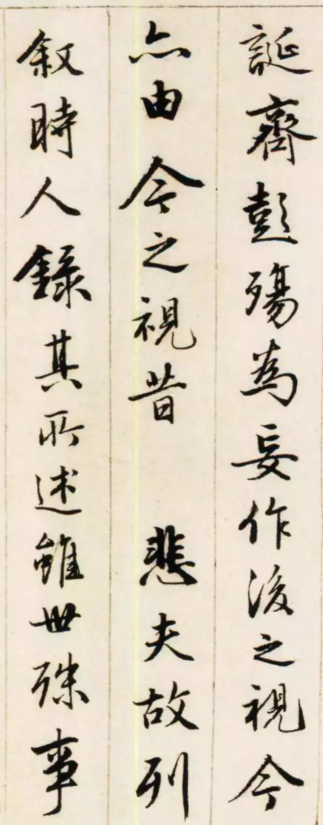 【7】诞,齐彭殇为妄作。后之视今,亦犹今之视昔。悲夫!故列叙时人,录其所述,虽世殊事