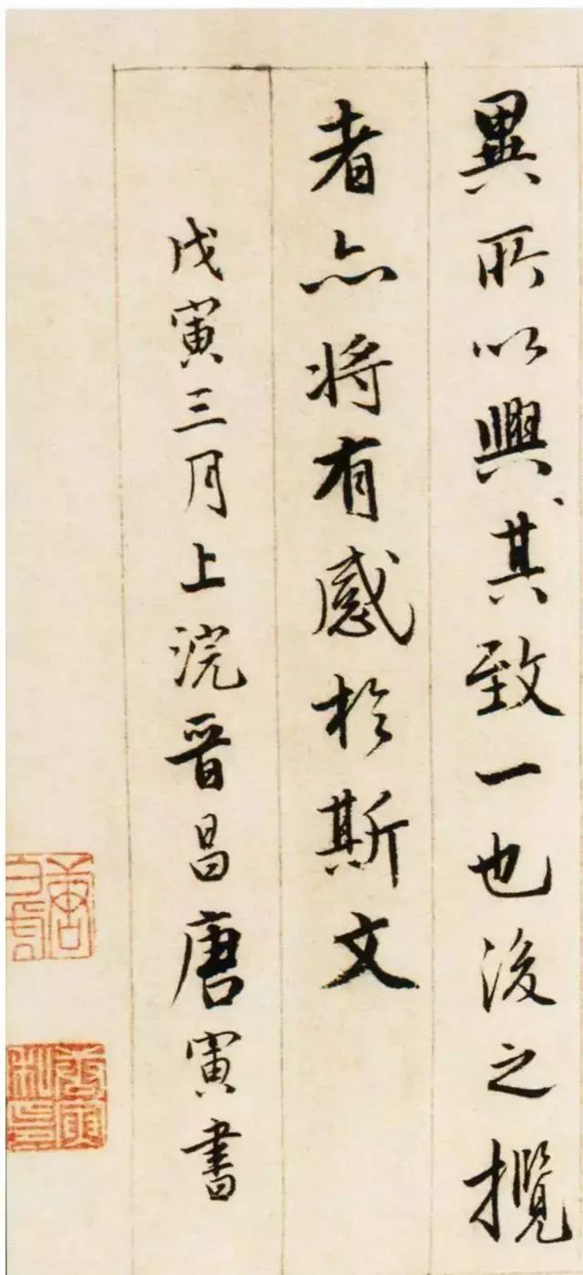 【8】异,所以兴怀,其致一也。后之览者,亦将有感于斯文。(戊寅三月上浣晋昌,唐寅书)