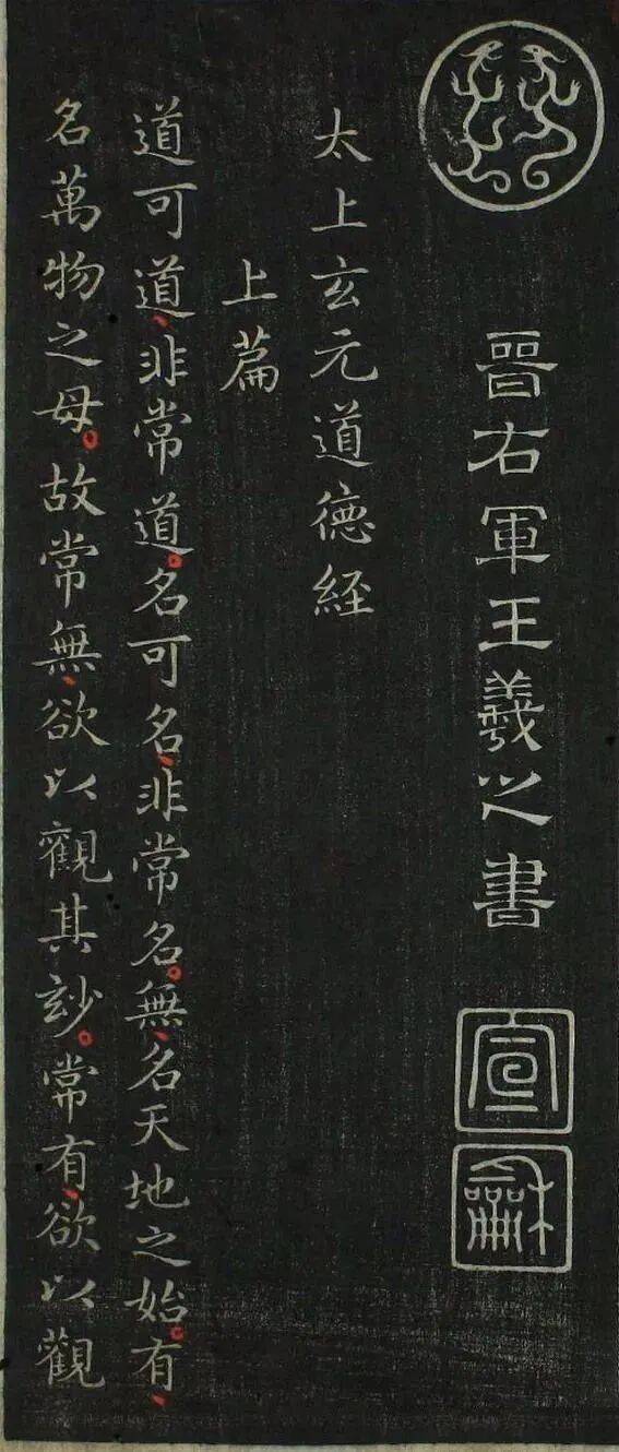 【1】晋右军王羲之书《太上玄元道德经》上篇;道可道,非常道;名可名,非常名。无名,天地之始,有名,万物之母。故常无欲,以观其妙,常有欲,以观