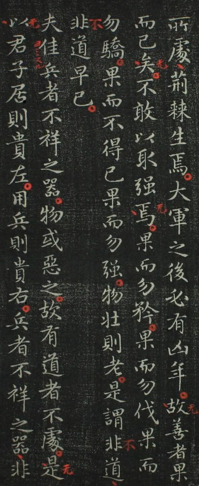 【21】所处,荆棘生焉;大军之后,必有凶年。善有果而已,不敢以取强。果而勿矜,果而勿伐,果而勿骄。果而不得已,果而勿强。物壮则老,是谓不道,不道早已。夫唯兵者,不祥之器,物或恶之,故有道者不处。君子居则贵左,用兵则贵右。兵者不祥之器,非