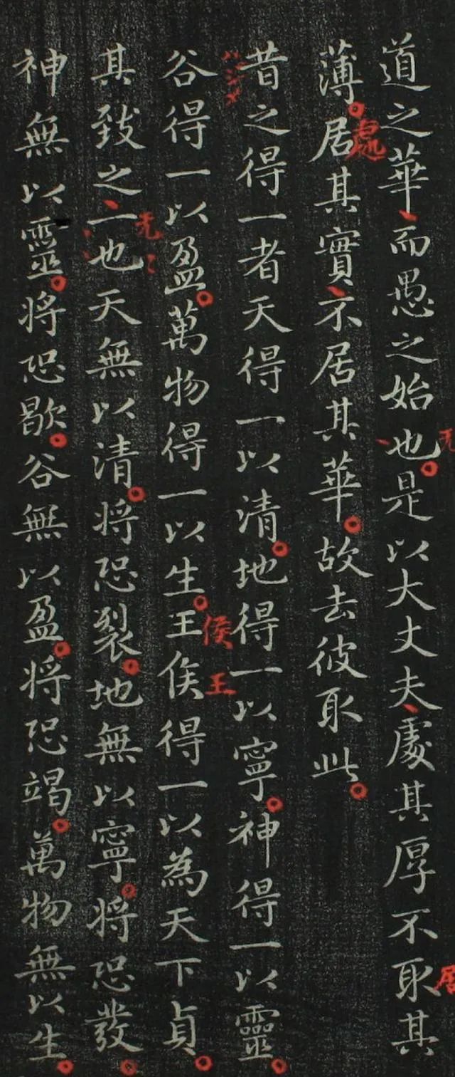 【27】道之华而愚之始。是以大丈夫处其厚,不居其薄,处其实,不居其华。故去彼取此。昔之得一者:天得一以清,地得一以宁,神得一以灵,谷得一以盈,万物得一以生,侯王得一以为天下正,其至也,谓:天毋已清将恐裂,地毋已宁将恐发;神毋已灵将恐歇,谷毋已盈