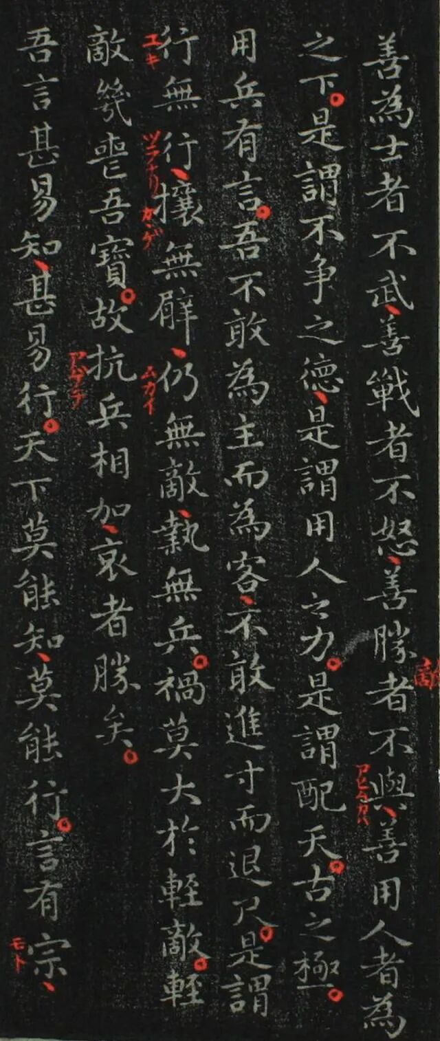 【47】善为士者不武,善战者不怒,善胜敌者弗与;善用人者,为之下。是谓不争之德,是谓用人之力,是谓配天古之极。用兵有言:“吾不敢为主而为客,不敢进寸而退尺。”是谓行无行,攘无臂,执无兵,乃无敌矣;祸莫大于轻敌,轻敌几丧吾宝。故抗兵相若,哀者胜矣。吾言甚易知,甚易行。天下莫能知,莫能行。言有宗,