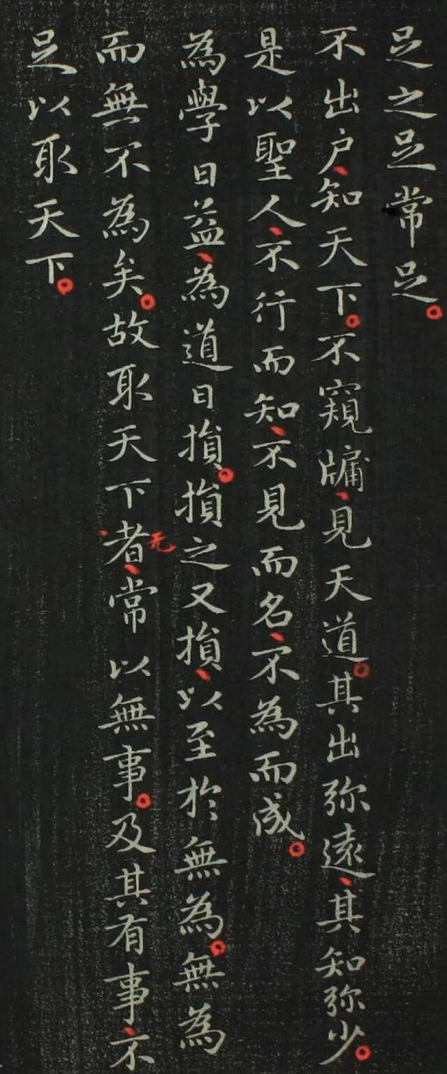 【32】足之足,常足矣。不出户,以知天下;不窥于牖,以知天道。其出弥远者,其知弥鲜。是以圣人不行而知,不见而明,弗为而成。为学日益,为道日损。损之又损,以至于无为。无为而无不为。取天下常以无事,及其有事,不足以取天下。