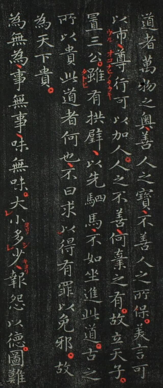 【42】道者万物之奥。善人之宝,不善人之所保。美言可以市,尊行可以加人。人之不善,何弃之有?故立天子,置三公,虽有拱璧以先驷马,不如坐进此道。古之所以贵此道者何?不曰:求以得,有罪以免邪?故为天下贵。为无为,事无事,味无味。大小多少,报怨以德。图难
