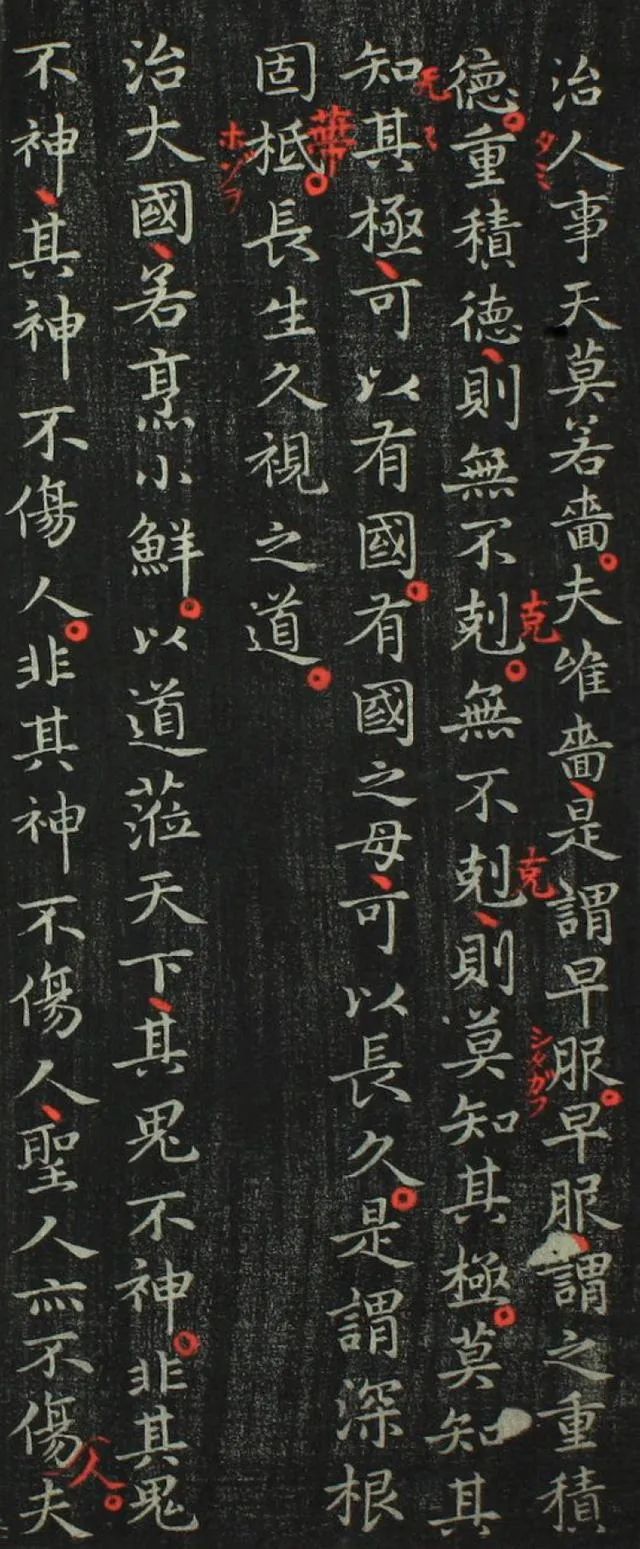 【40】治人事天,莫若啬。夫为啬,是以早服;早服谓之重积德;重积德则无不克;无不克则莫知其极;莫知其极,可以有国;有国之母,可以长久;是谓深根固柢,长生久视之道。治大国,若烹小鲜。以道莅天下,其鬼不神;非其鬼不神,其神不伤人;非其神不伤人,圣人亦不伤人。夫