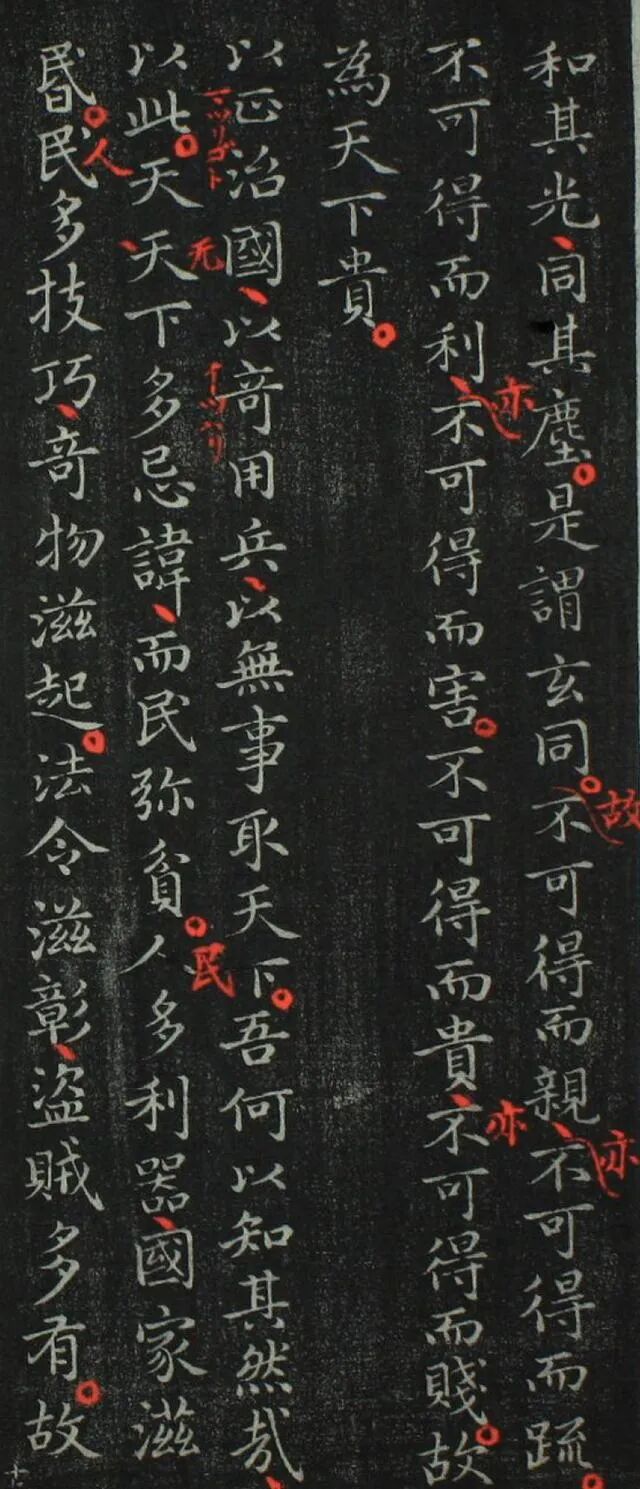 【38】和其光,同其尘,是谓玄同。故不可得而亲,不可得而疏;不可得而利,亦不可得而害;不可得而贵,亦不可得而贱。故为天下贵。以正治国,以奇用兵,以无事取天下。吾何以知其然哉?天下多忌讳,而民弥叛;民多利器,国家滋昏;人多知而奇物滋起;法令滋彰,盗贼多有。故