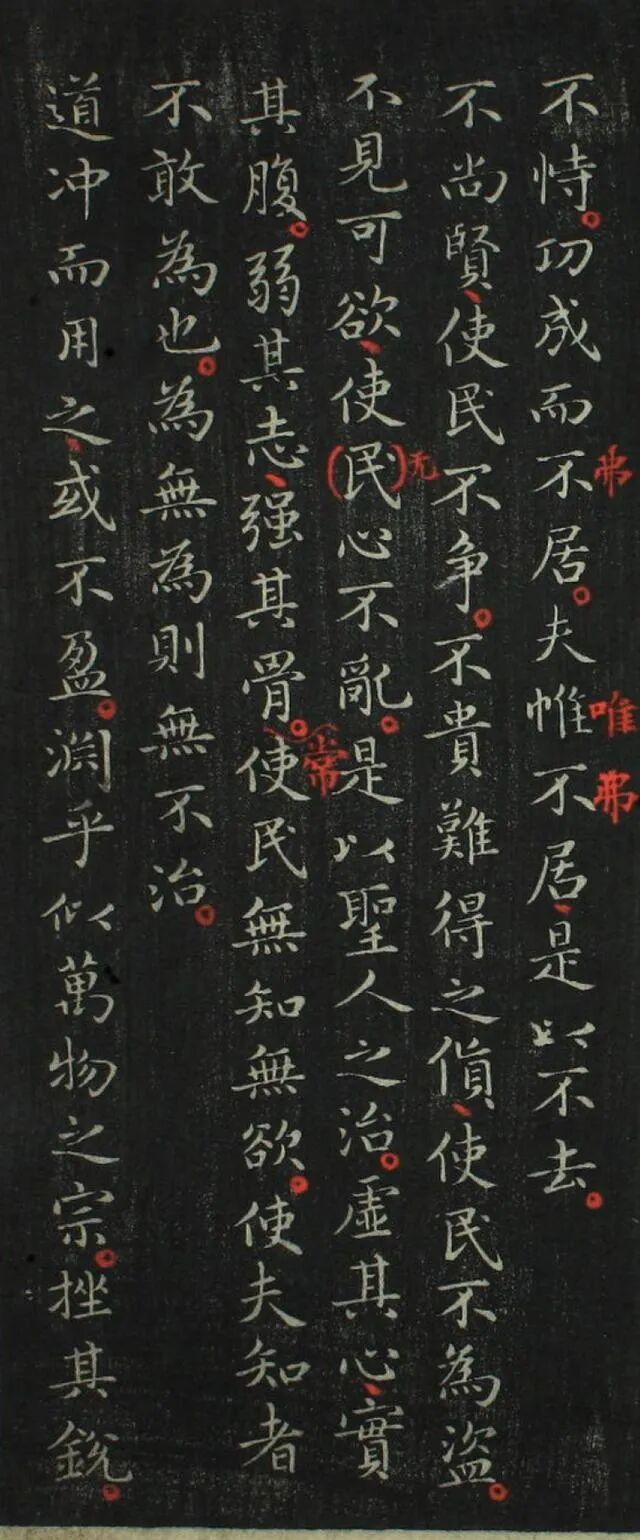 【3】不恃,功成而弗居。夫惟弗居,是以不去。不尚贤,使民不争;不贵难得之货,使民不为盗;不见可欲,使民心不乱。是以圣人之治,虚其心,实其腹,弱其志,强其骨,常使民无知无欲。使夫知者不敢为也。为无为,则无不治。道冲,而用之或不盈。渊兮,似万物之宗。挫其锐,