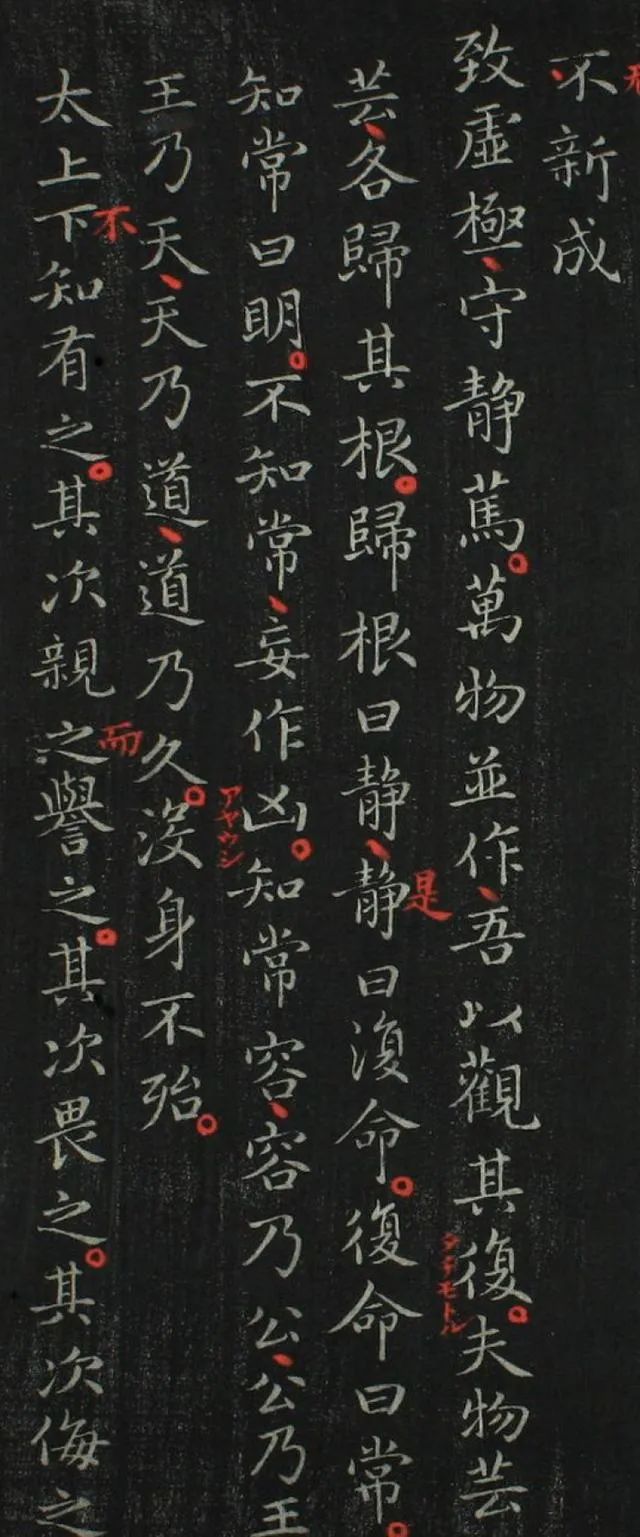 【11】不新成。致虚极,守静笃,万物并作,吾以观其复。夫物芸芸,各复归其根。归根曰静,是谓复命。复命曰常,知常曰明,不知常,妄作,凶。知常容,容乃公,公乃全,全乃天,天乃道,道乃久,没身不殆。太上,下知有之;其次,亲而誉之;其次,畏之;其下,侮之。