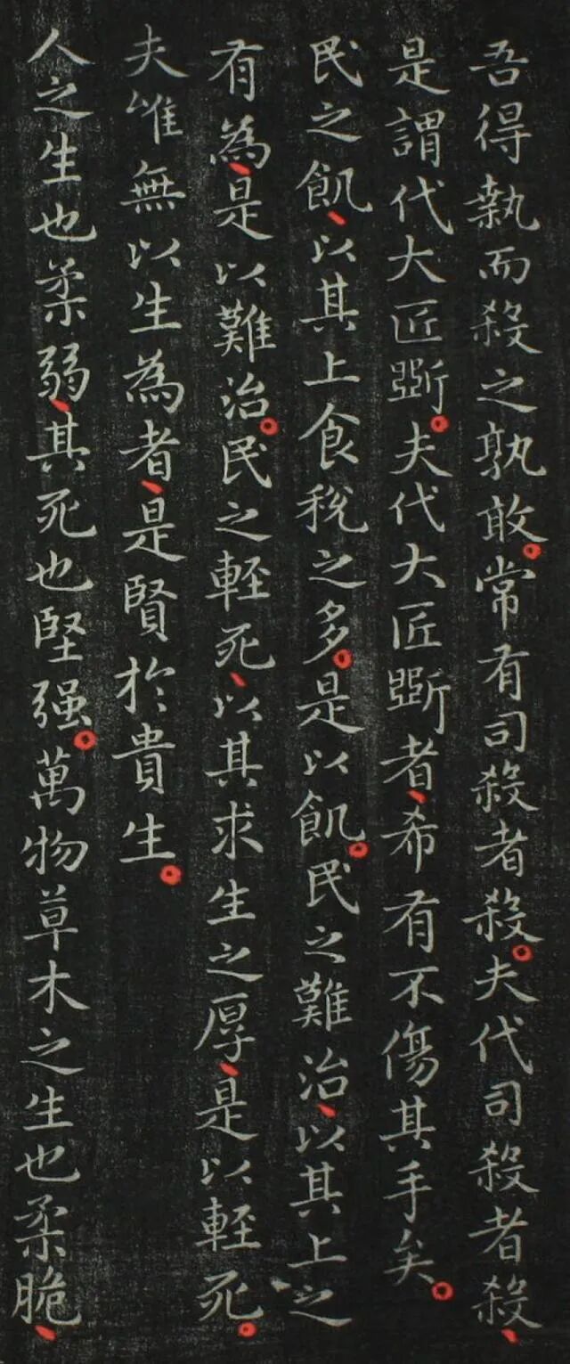 【50】吾将得而杀之,夫孰敢矣?若民恒且必畏死,则恒有司杀者夫代司杀者杀,是代大匠斫也,夫代大匠斫者,希有不伤其手矣。民之饥,以其上食税之多,是以饥;民之难治,以其上之有为,是以难治;民之轻死,以其求生之厚,是以轻死。夫唯无以生为者,是贤于贵生。人之生也柔弱,其死也坚强。草木之生也柔脆,