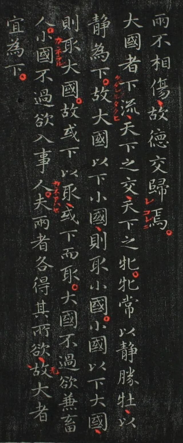【41】两不相伤,故德交归焉。大邦者,下流也,天下之牝也,天下之交也,牝恒以静胜牡,为其静也,故宜为下也。故大邦以下小邦,则取小邦;小邦以下大邦,则取大邦。故或下以取,或下而取。大邦不过欲兼畜人,小邦不过欲入事人。夫两者各得所欲,则大者宜为下。