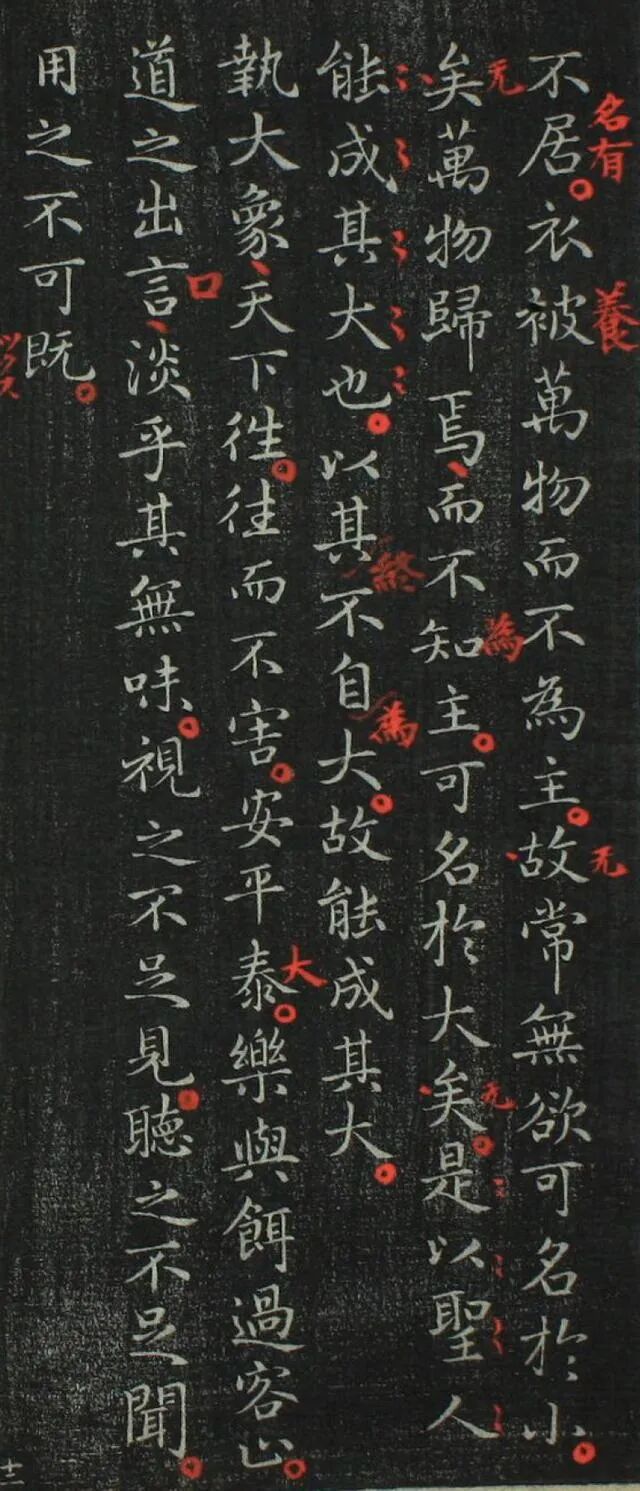 【24】不名有。衣养万物而不为主,常无欲,可名于小;万物归焉而不为主,可名为大。是以圣人之能成大也,以其不为大也,故能成大。执大象,天下往。往而不害,安平太。乐与饵,过客止。道之出口,淡乎其无味,视之不足见,听之不足闻,用之不足既。