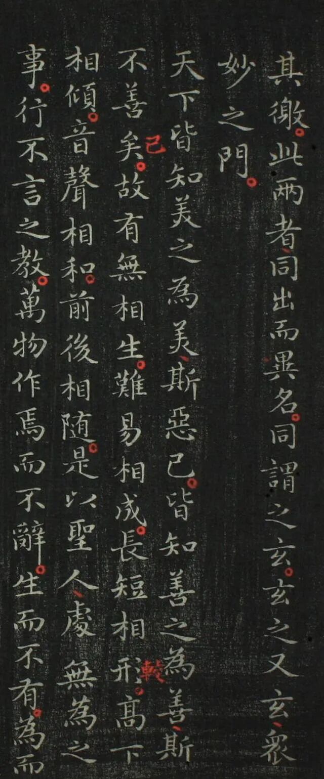 【2】其徼。此两者,同出而异名,同谓之玄,玄之又玄,众妙之门。天下皆知美之为美,斯恶已,皆知善之为善,斯不善已。故有无相生,难易相成,长短相形,高下相倾,音声相和,前后相随。是以圣人处无为之事,行不言之教,万物作焉而不辞,生而不有,为而