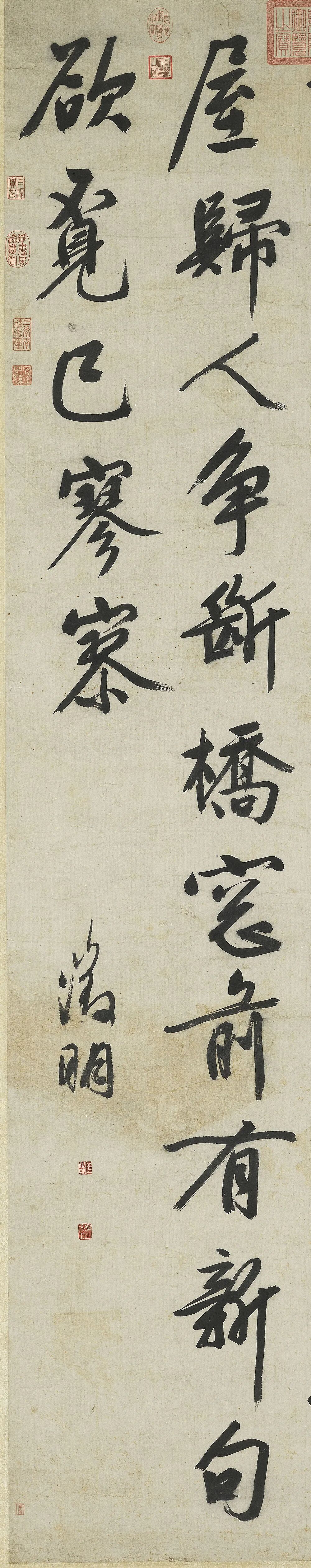 【2】屋,归人争断桥。窗前有新句,欲觅已寥寥。徵明。