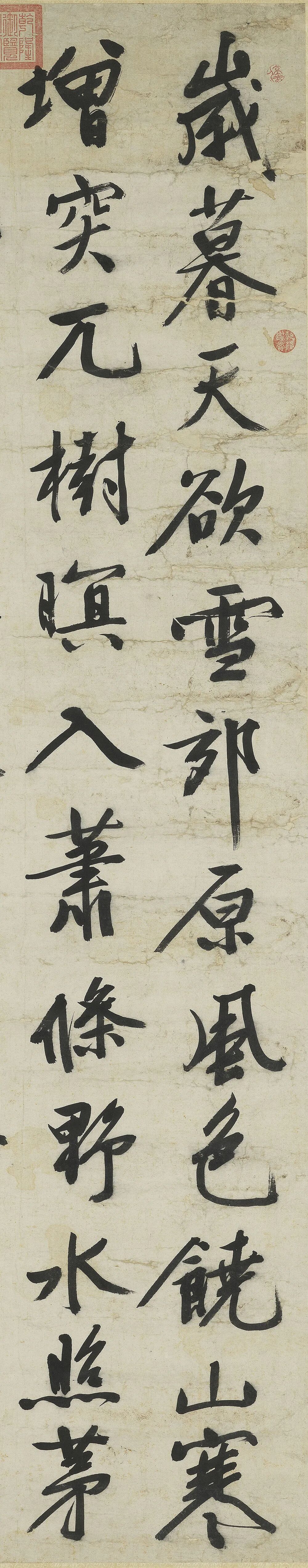 【1】岁暮天欲雪,郊原风色饶。山寒增突兀,树暝入萧条。野火照茅