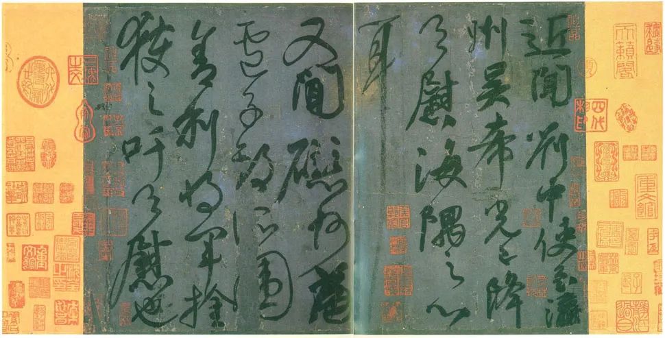 此帖又称《瀛州帖》,著录首见宋《宣和书谱》,无书写年月。《刘中使帖》是颜行草书中字体最大的。文曰:“近闻刘中使至瀛州,吴希光已降。足慰海隅之心耳。又闻磁州为卢子期所围,舍利将军擒获之。吁足慰也。”