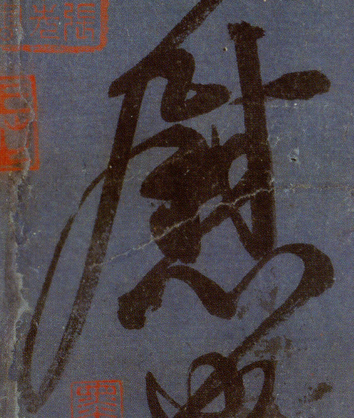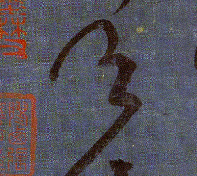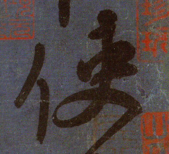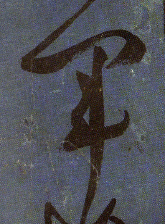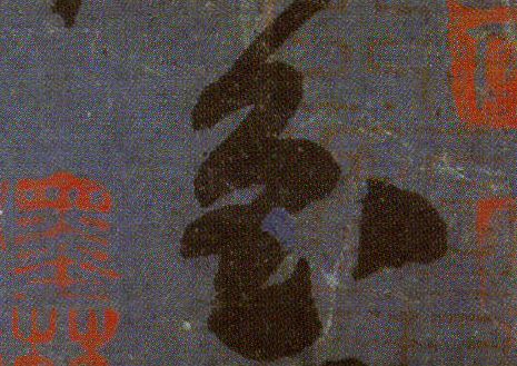 说它是神品,首先即是有感于它竟是如此恰到好处地体现出颜书的强筋特点。事实上,颜筋柳骨分别是指他们的楷书呵言,行草未必包括在内。但以一人书风特征的协调性,在楷与行草中本来应该有些许共同之处。柳公权对“骨”的理解,无论就楷书《神策军碑》或行草《蒙诏帖》,均有表现,属于协调者;颜真卿的楷书如《颜勤礼》,《颜家庙》等碑与行草《争座位帖》、《祭侄帖》相比,楷书强“筋”感觉强烈而行草则点画锐利、冲击力很大,却是两种不同的基调。在唐代诸公中,欧阳询近柳而虞世南近颜,欧协调而虞不协调,这只要把《梦奠帖》与《汝南公主墓志》分别与欧虞的楷书作时比即可明了。