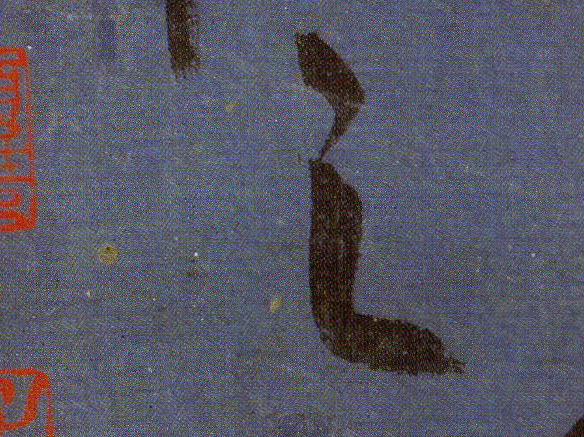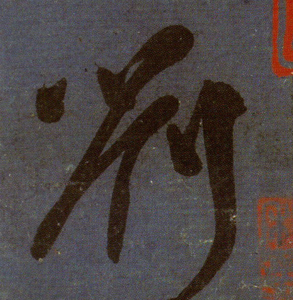 《刘中使帖》却让我们重温颜书强筋的特征。所谓“点如坠石,画如复云,钩如屈金,戈如发弩”四句,足以当之。特别是屈金发弩之比,用以揭示此帖中的线条弹性之美可谓一语中的。在颜书宽博的结构共同制约下,我们更多地可从此帖中窥出线条运动时的丰润感与弹性之美,我以为这是《刘中使帖》中透射出的最强度的审美信息。此外,线条在环绕连带时所呈现出的顿挫分明、肯定果断的笔势,也使我们在品其丰润之外不得不同时顾及到此帖的刚健一面。如“耳”字的长笔直下,其势迅疾,其意遒劲,而线条则颇如颜真卿对张旭所叙述的写书心得:“锥划沙”。