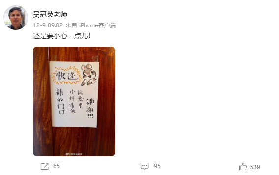 我国著名的设计师、清华大学吴冠英教授因感染重型感冒,于12月20日上午逝世,享年 67岁。