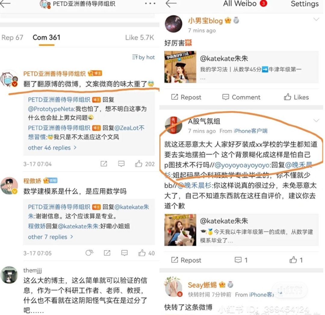 这不是朱雯琪第一次上热搜了,就在今年2月,她在虎扑发帖求助时,一位男网友就对她的身份感到疑惑。等她证实后,非但没有得到道歉,对方反而扔下一句:这女的居然真是牛津的,看来牛津也没有那么难嘛,我也可以试试。