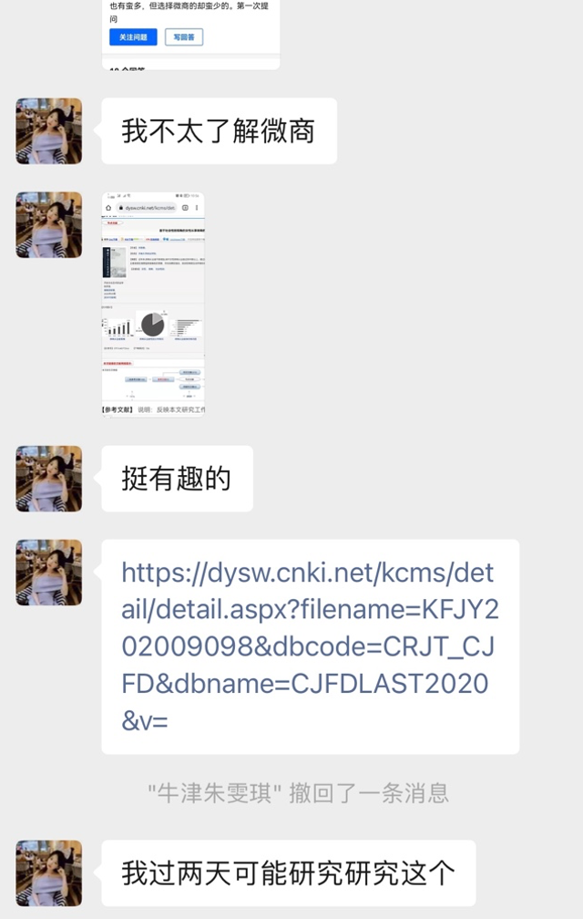 朱雯琪找答案的方式很有意思,她会像做学术一样,先去知网搜和“微商”相关的论文,然后再整理网友们的讨论,运用缜密的逻辑,得出最少三种结论。