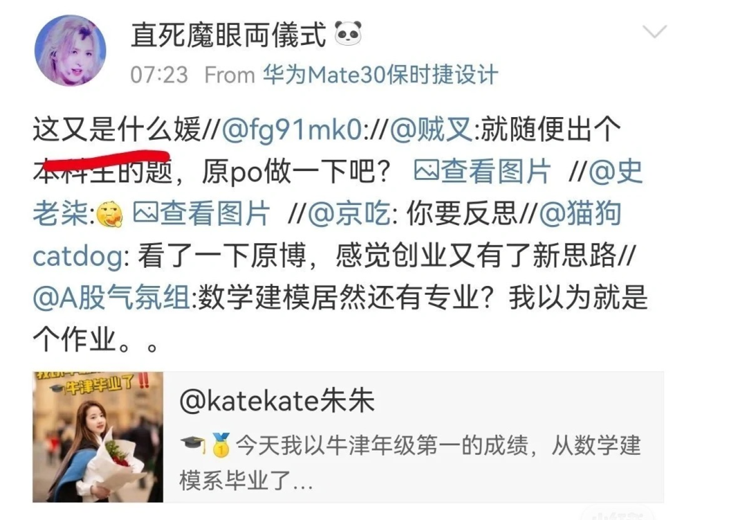 而在微博的这次“学历质疑风波”里,她po出自己的学生证、毕业证和官网截图,朱雯琪以为用同样的方式,就可以消除网友的质疑。不料大家并不理会,甚至还有一位数学大V,@她来做数学题,想要她自证清白。