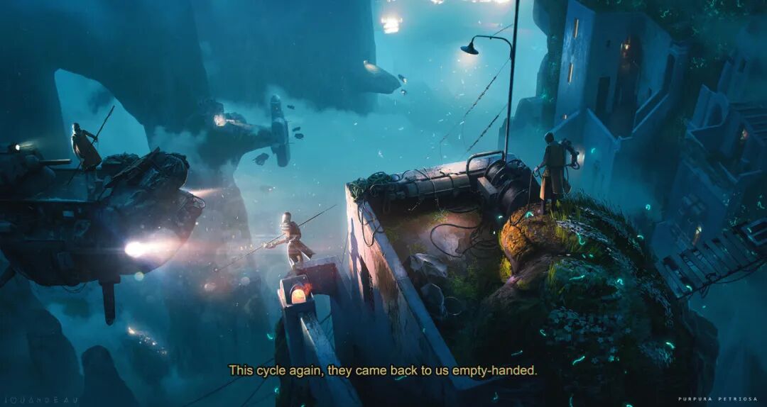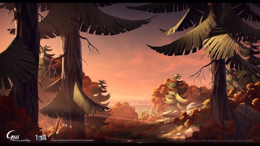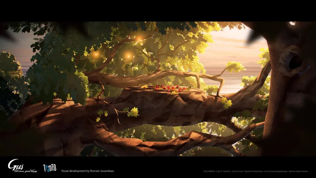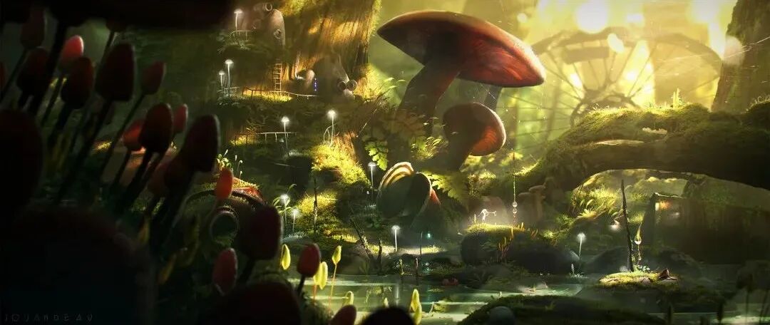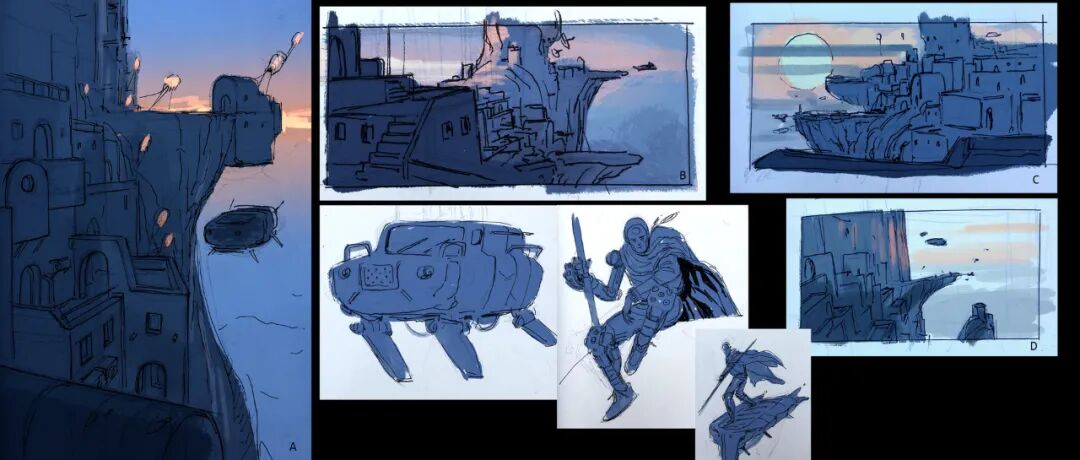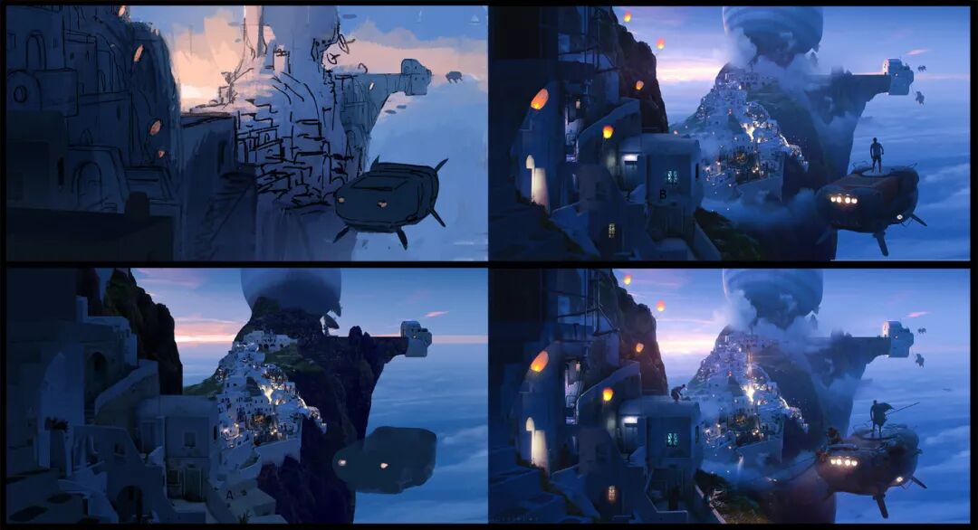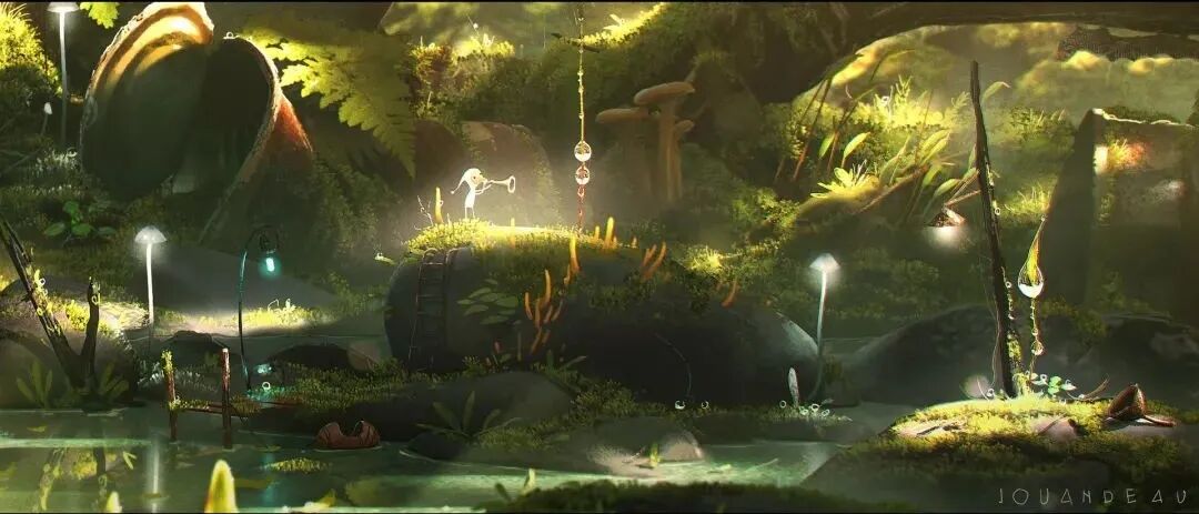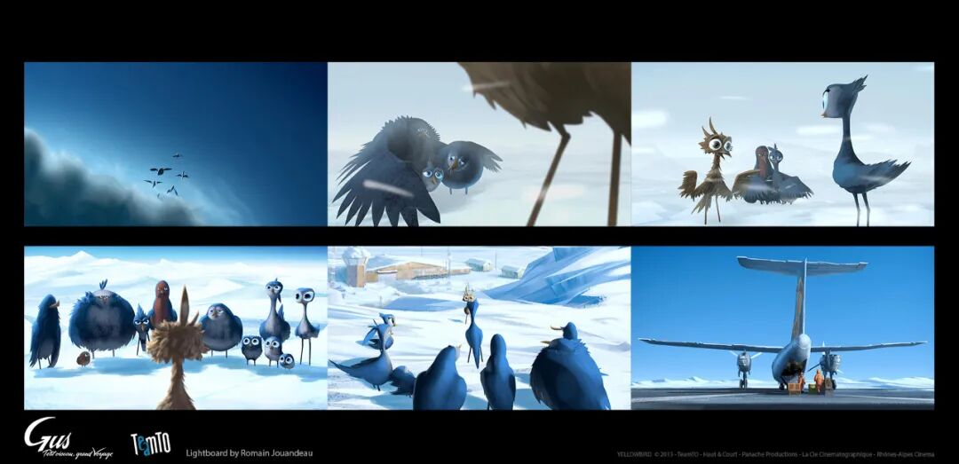 除了以上CG场景概念图,2018年,R神在法国TeamTO动画公司推出的动画电影《飞鸟历险记》的概念设计中,也呈现出了自己极为高水准的分镜能力,流畅的叙事搭配十分风格化的光影和色彩,每一帧故事性都极强!