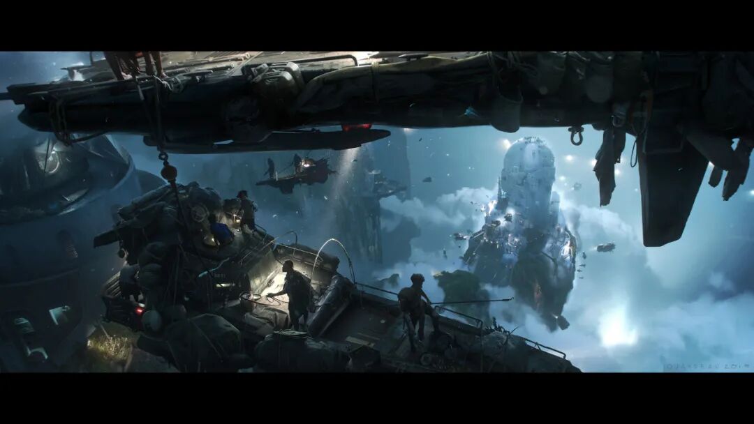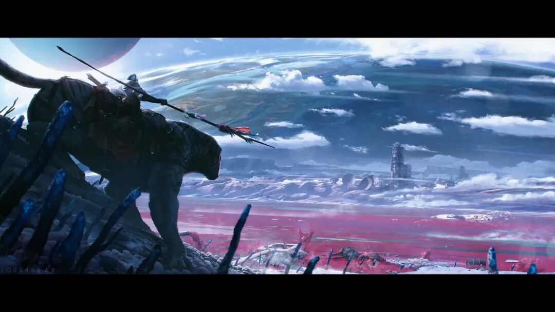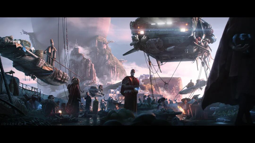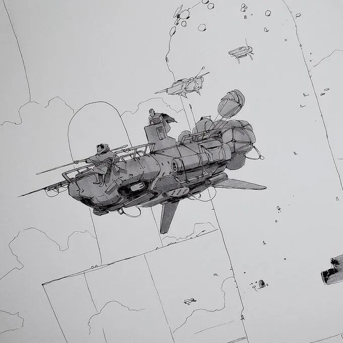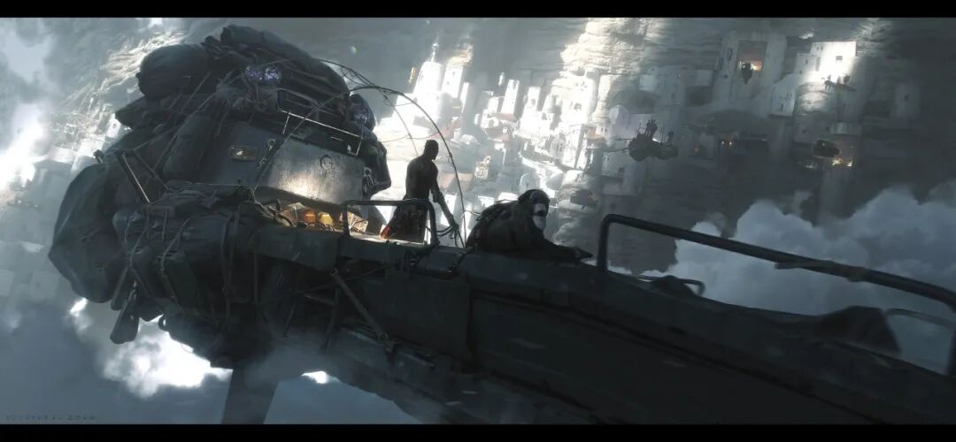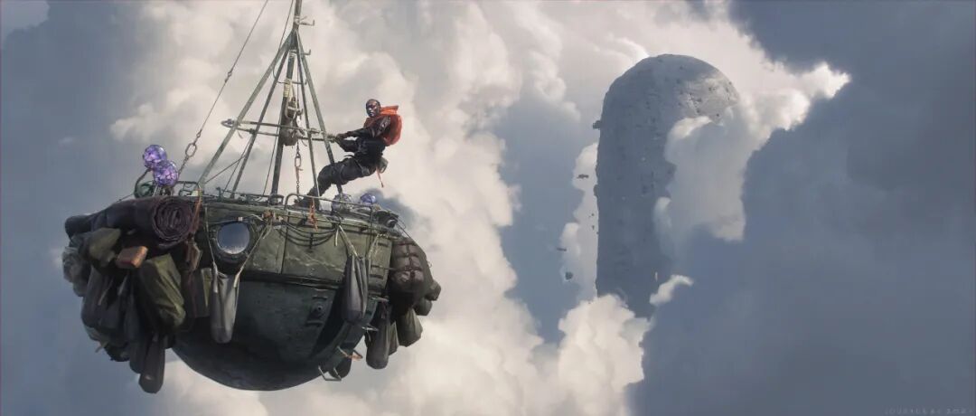 其作品多以恢弘大气的大场景为主,绘制基本是线稿+blender+照片贴图的流程,绘制过程上一般先以草图构成和配色然后贴材质素材的画法进行。