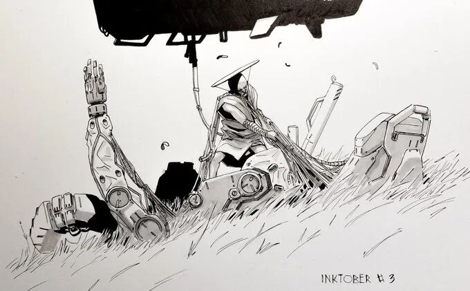 成功从来都不是一蹴而就,为了保持良好的灵感和绘画手感,Romain还经常参与一些线上打卡,平均30分钟一张手稿,在大量的练习基础上,造就如今对造型和光影刻画的敏感度。