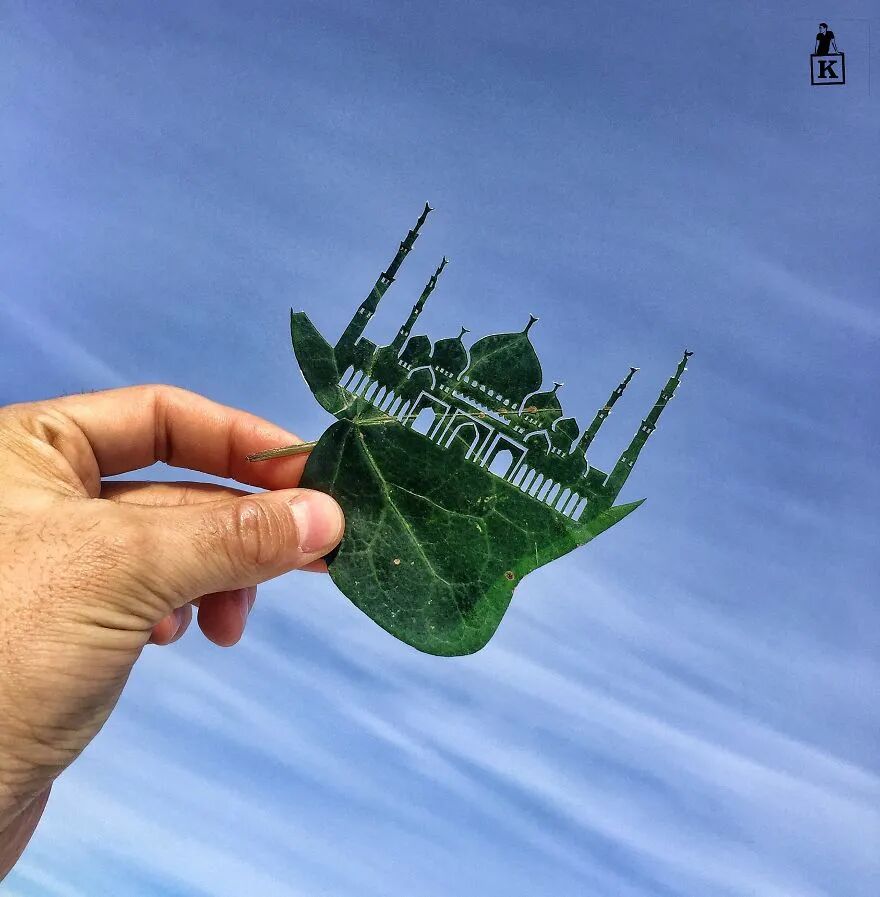 对于卡纳特·努尔塔津来说,树叶是特别的存在,叶子只有短暂的生命,就像我们人类一样,抽芽代表着新生,而落叶则象征着死亡,将这些落叶雕刻成有趣的图案,就像是给予这些落叶第二次生命,让它们有机会向人们讲述一个个好玩的故事。这些用于雕刻的树叶大多都是他在夏末和秋天进行收集而来,枫叶是卡纳特·努尔塔津最喜欢使用的叶子。