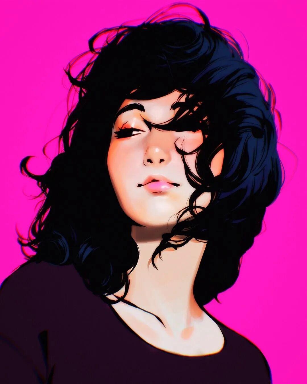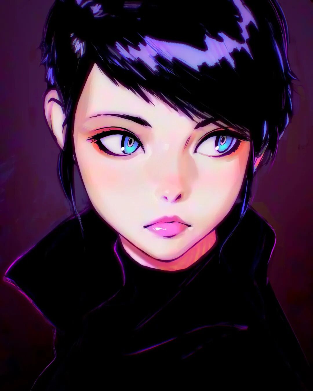 Kuvshinov日常作品多以女性角色的为主,角色设计个人特色鲜明,色彩搭配和华丽迷人的光影看起来非常舒服,日系和俄式画风的融合使得他的作品很有辨识度。