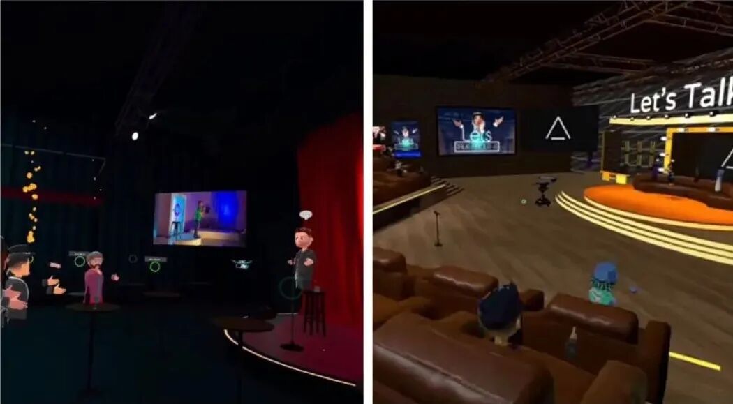 疫情下,元宇宙的社交功能成为主流。微软旗下的Altspace、Meta的Horizon Worlds等都是类似的元宇宙社交平台(图为不同平台的活动现场,观众通过VR设备入场,气氛火热)