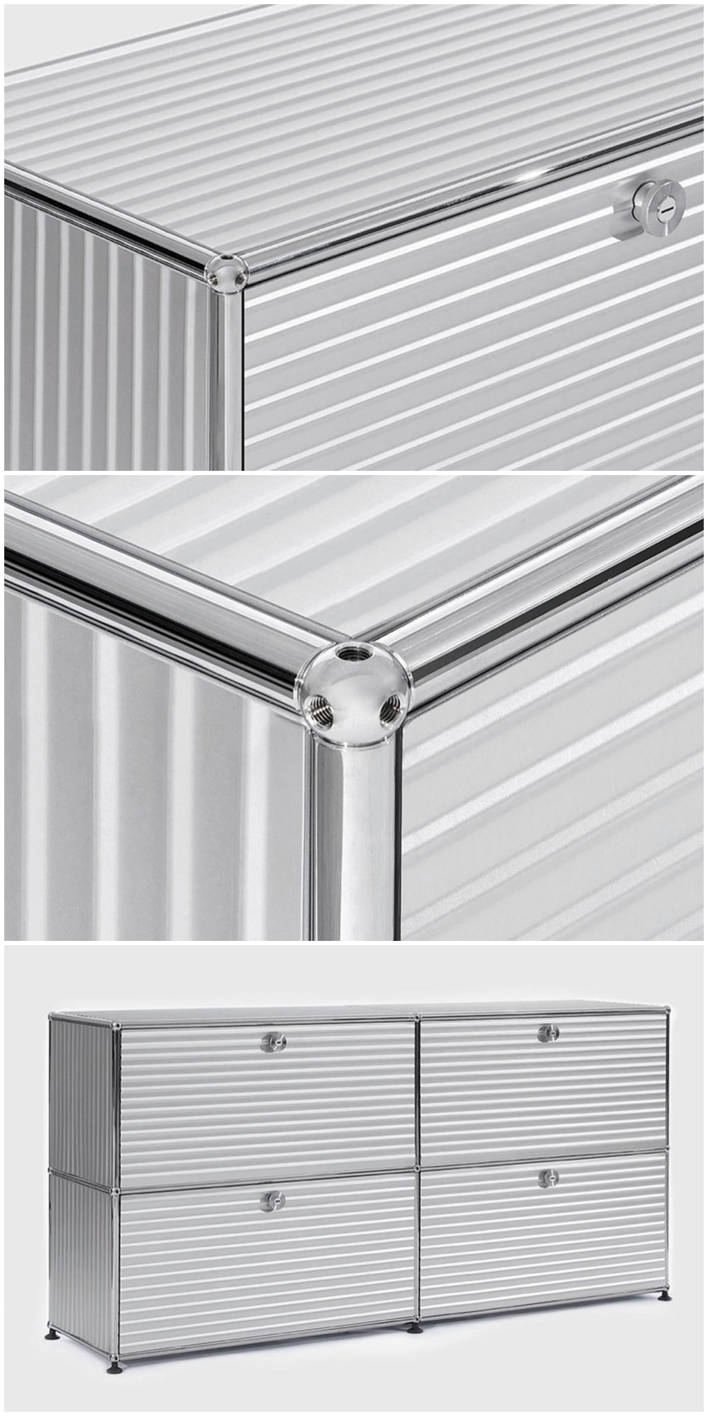 于是,我们看到了RIMOWA联名家具的诞生,把RIMOWA招牌的铝镁合金沟槽材质安装在USM Haller柜门上,形成独一无二的第十五种“Color”。