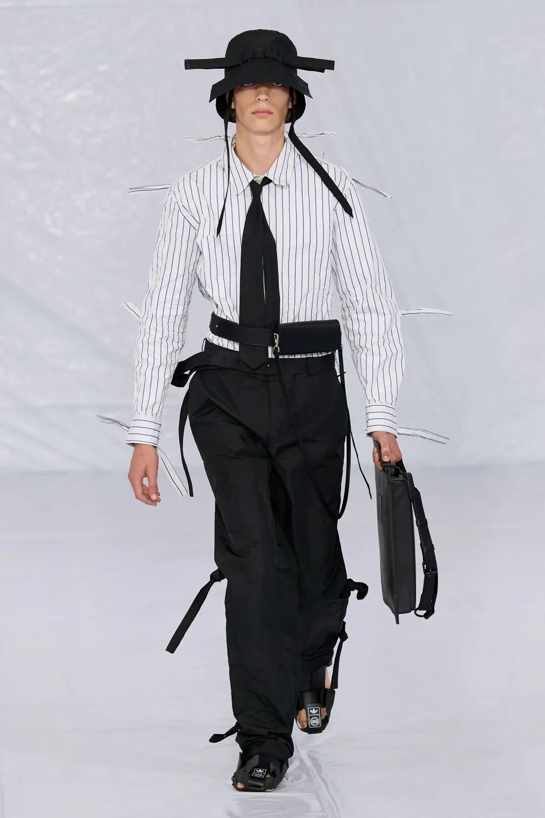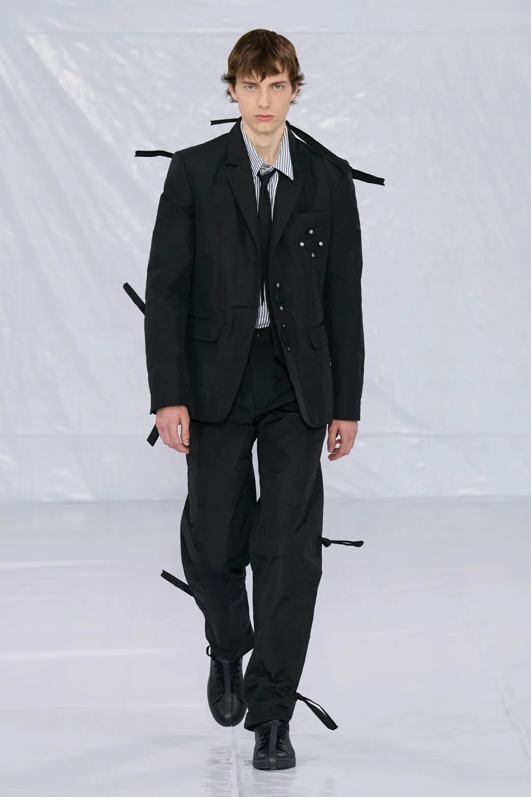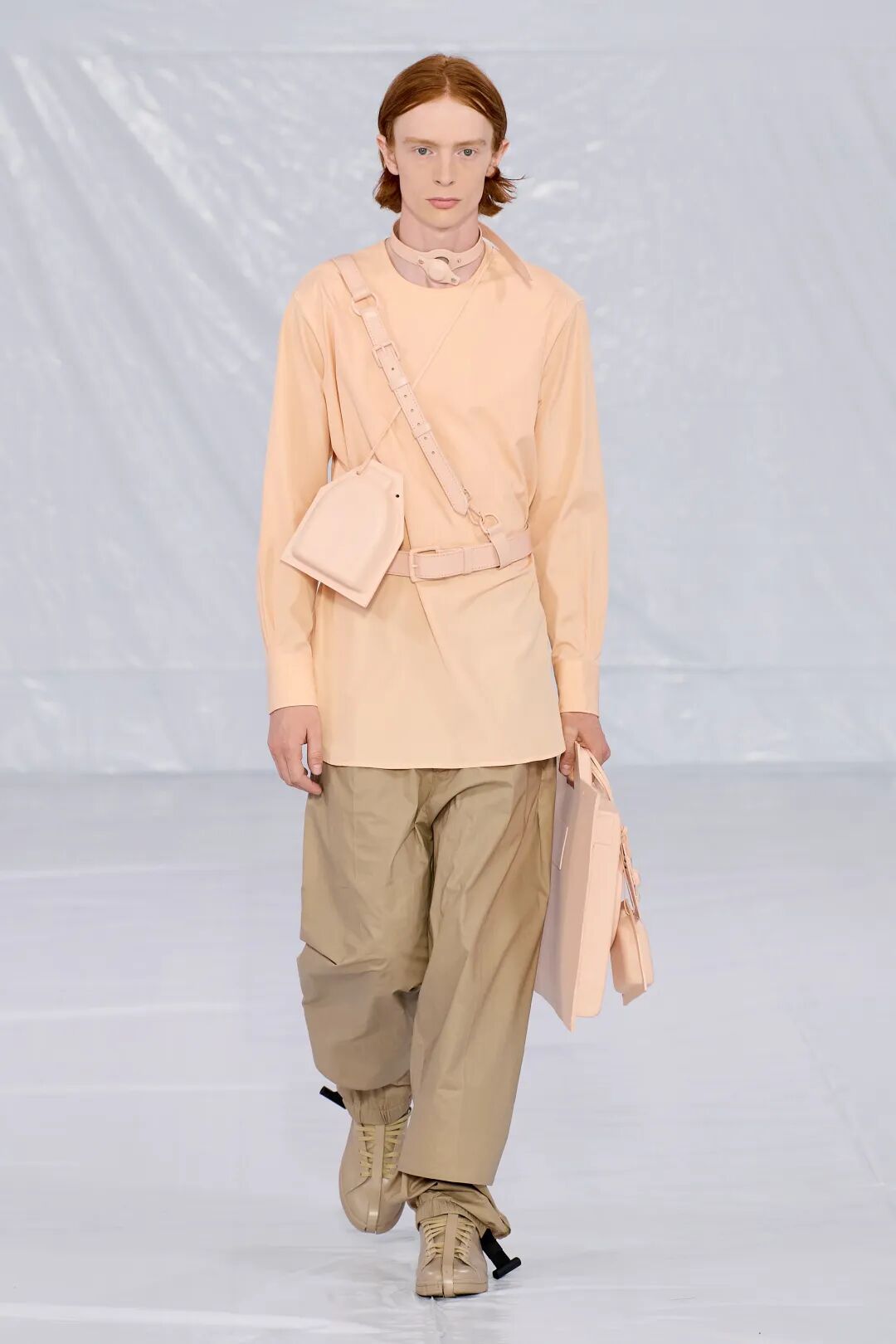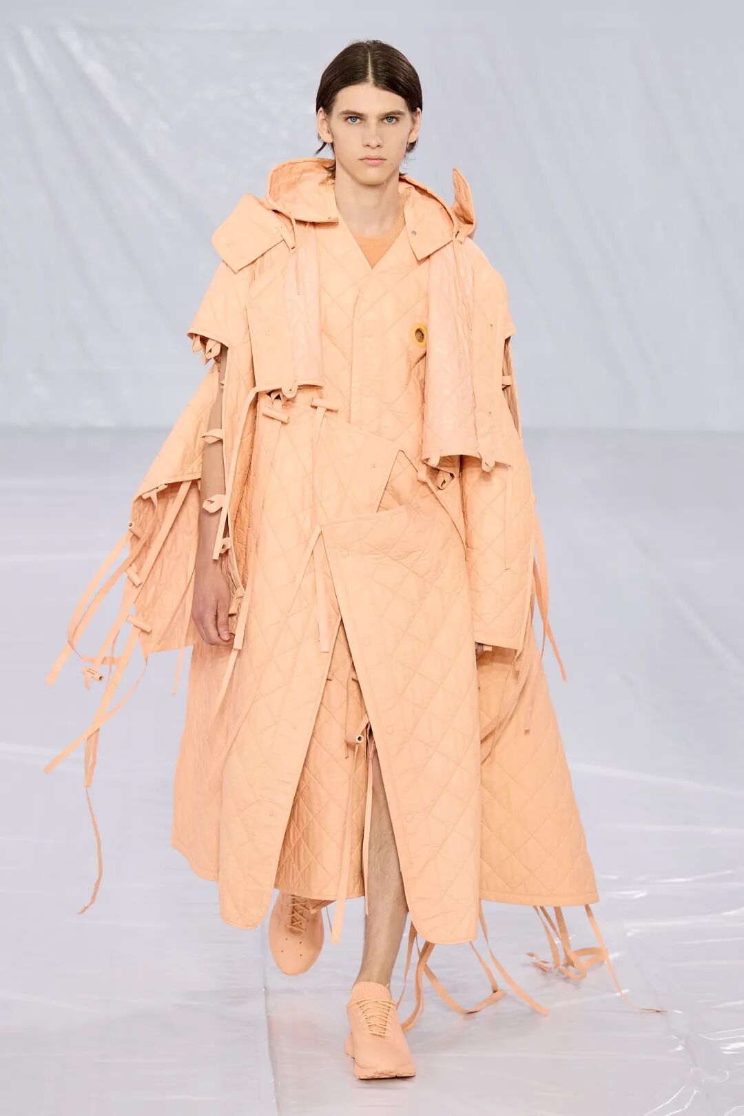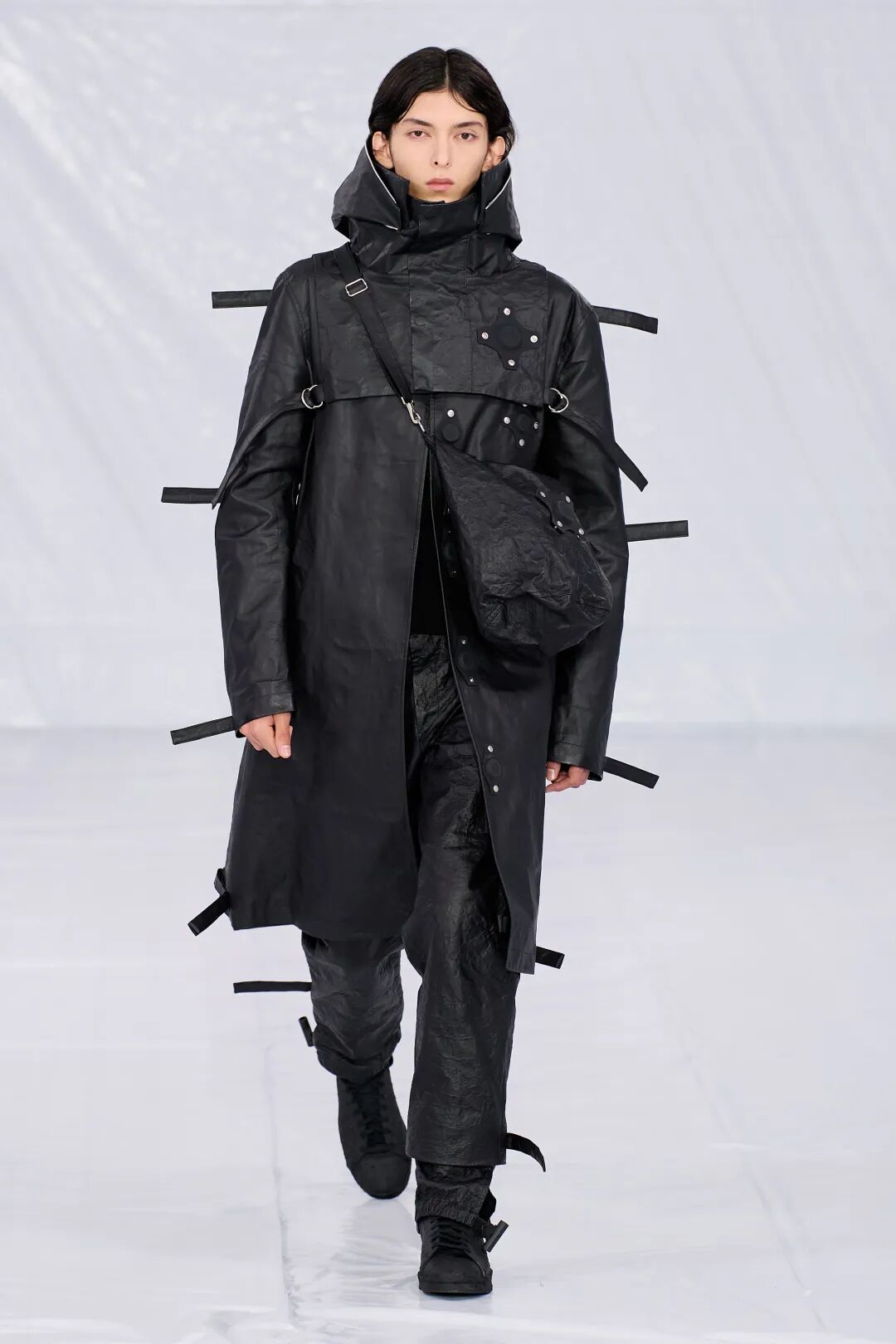 Craig Green将旅程的线性叙事经过整合,注入到设计中。在这里男子气概被质疑、解构、重新演绎,那带有分解性的手工配饰经过重新排练组合,好像军旅的设备让人想到了创伤与破碎。