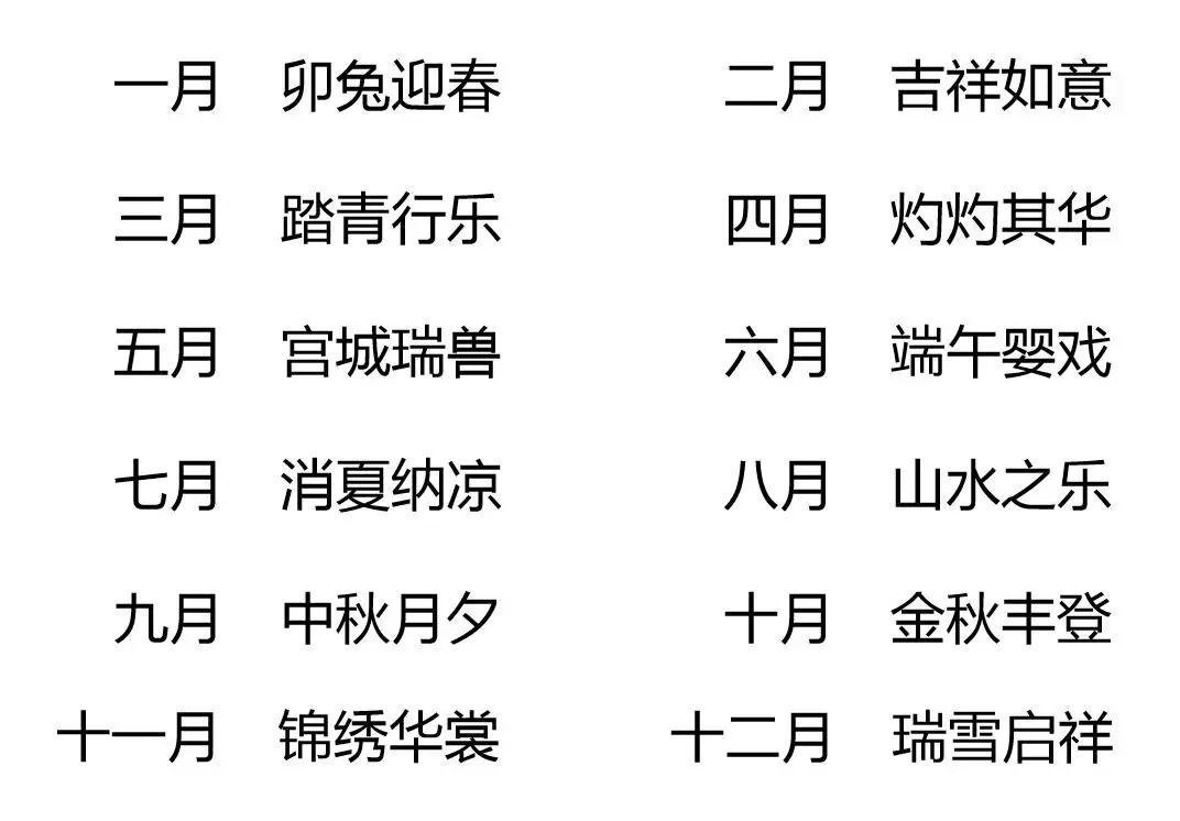 整体内容依据故宫珍藏的四类人物故事画——千秋佳人、林下风雅、众生百态、庙堂仪范分别为四季的主题,呈现了闺阁佳丽、逸士高隐、市井生活、明君贤臣的典故或故事。